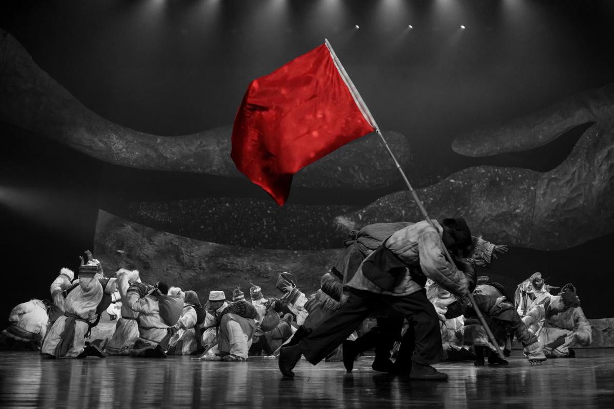 《金银滩・金银花开》融合海北藏族传统舞蹈与当代舞、古典舞元素,在音乐创作中,将草原民歌与时代旋律交织,民族乐器与现代配乐融合。舞台设计上则灵活运用活动围墙表现虚实交织场景,既呈现了辽阔的草原场景,又再现了科研基地从荒芜到崛起的建设图景。