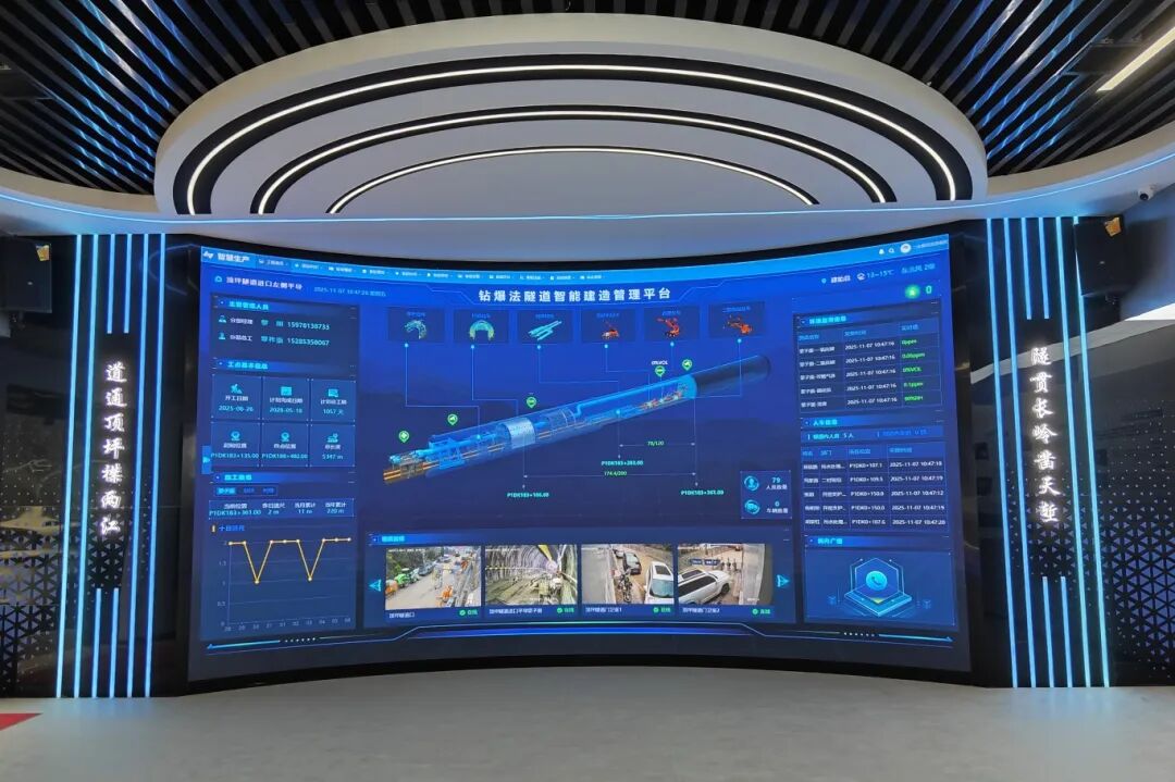 “屏幕点亮的那一刻,整个隧道仿佛拥有了‘生命’”。在项目数智调度中心,信息化专班负责人胡自强指着屏幕上跳动的数据说。在中铁隧道局“项目管理信息化”统筹推进下,项目构建起钻爆法隧道智能建造管理平台,推动传统施工经验与数字技术深度融合。