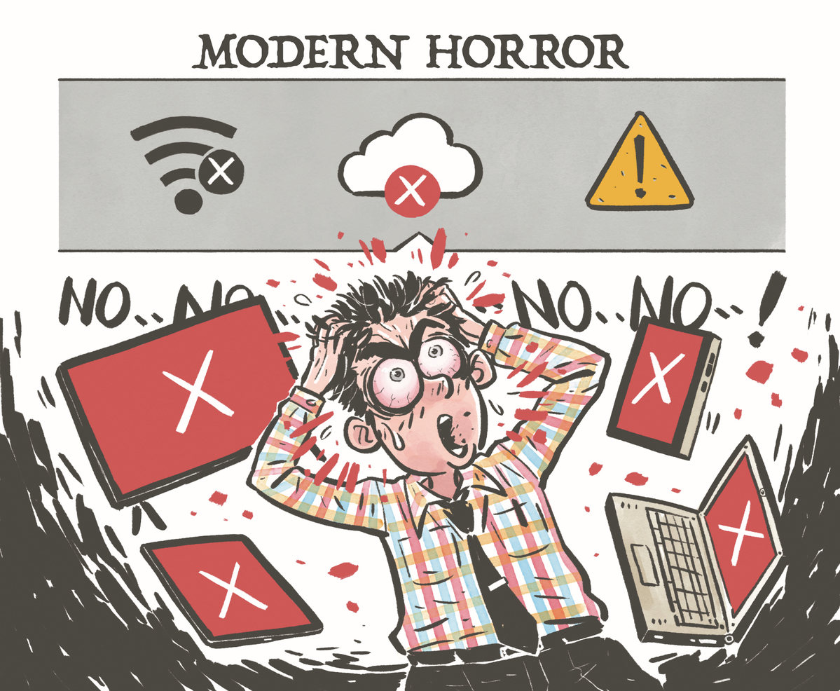 网络故障已经成了现代人的恐怖片。(来源:中国日报 蔡艨 英文《中国日报》2025年11月20日8版)