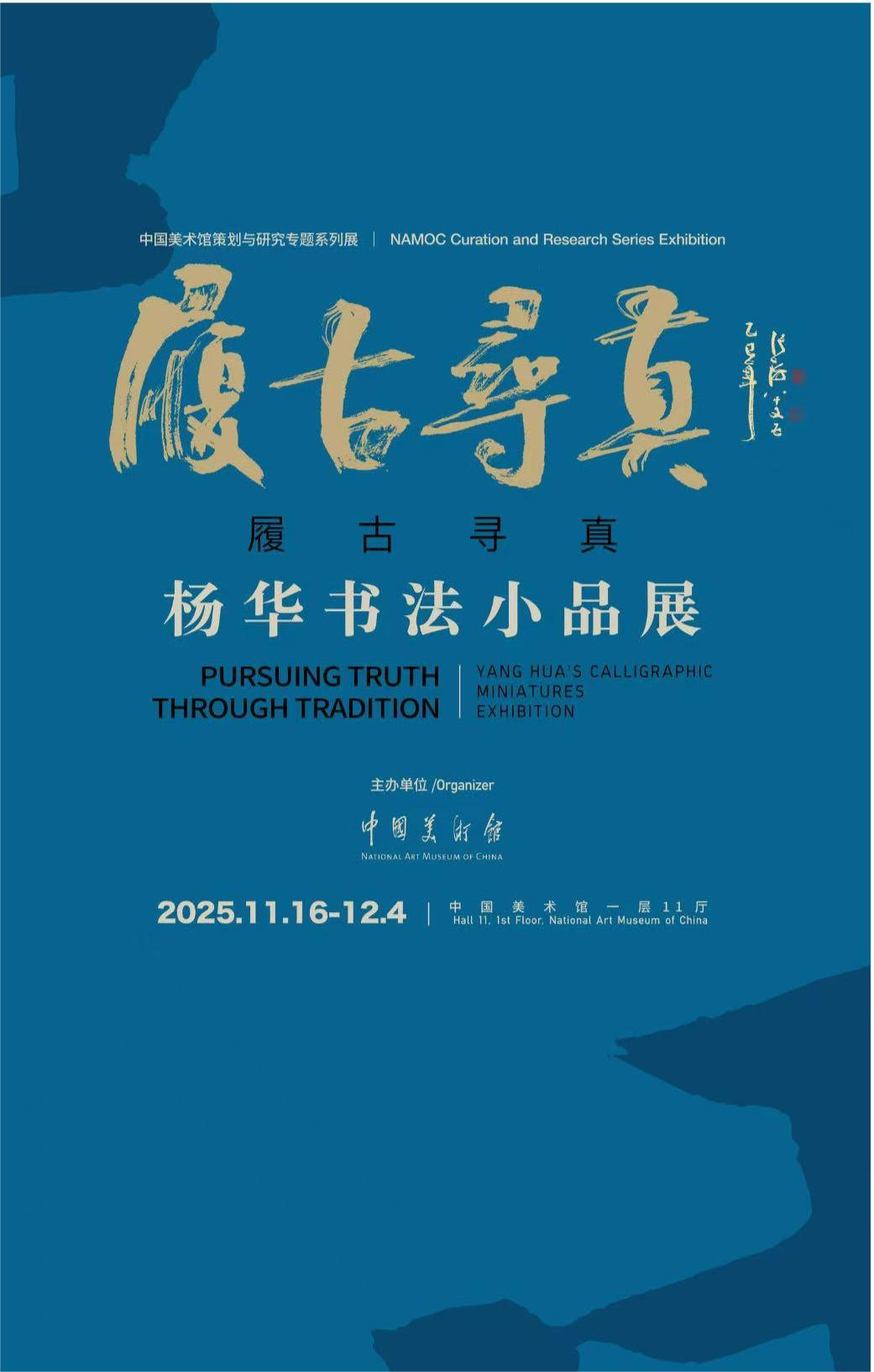 由中国美术馆主办的“履古寻真——杨华书法小品展”于2025年11月16日至12月4日在中国美术馆一层11号展厅向公众展出。本次展览作为中国美术馆策划与研究专题系列展之一,集中呈现书法家杨华近年创作的精品力作。