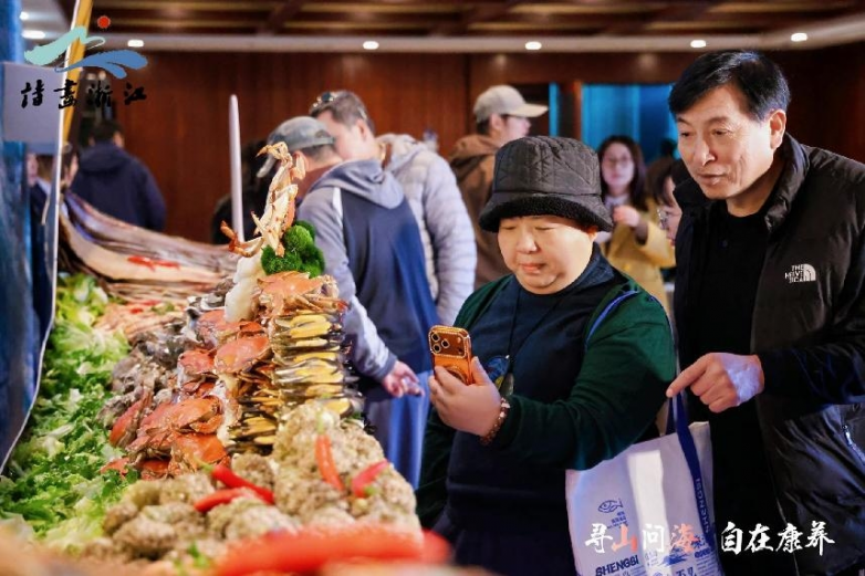 启动仪式后,本次主题推广活动的系列配套活动也同步深入推进。海岛美食风物集由省文化广电和旅游厅、省供销合作社联合社联合布展,分为“海鲜大赏”“非遗文创”两大主题,以20道海洋美食和9大特色摊位串联展示浙江山区海岛特色美食、丰厚物产和非遗文化。“海鲜大赏”展区内,来自深海的时令鱼获、肥美贝类琳琅满目,色泽鲜亮,香气四溢,让人直观感受到“中国海鲜之都”的饕餮魅力;与之相邻的“非遗文创”展位,则汇聚了匠心独运的船模、渔绳结等手工艺品,匠人们现场展示着代代相传的技艺,让游客在亲手触摸与观摩中,深入体验当地精湛的传统手工艺所承载的海洋文化与智慧,为“自在康养”的文旅主题增添了浓郁的地方风味与烟火气息。