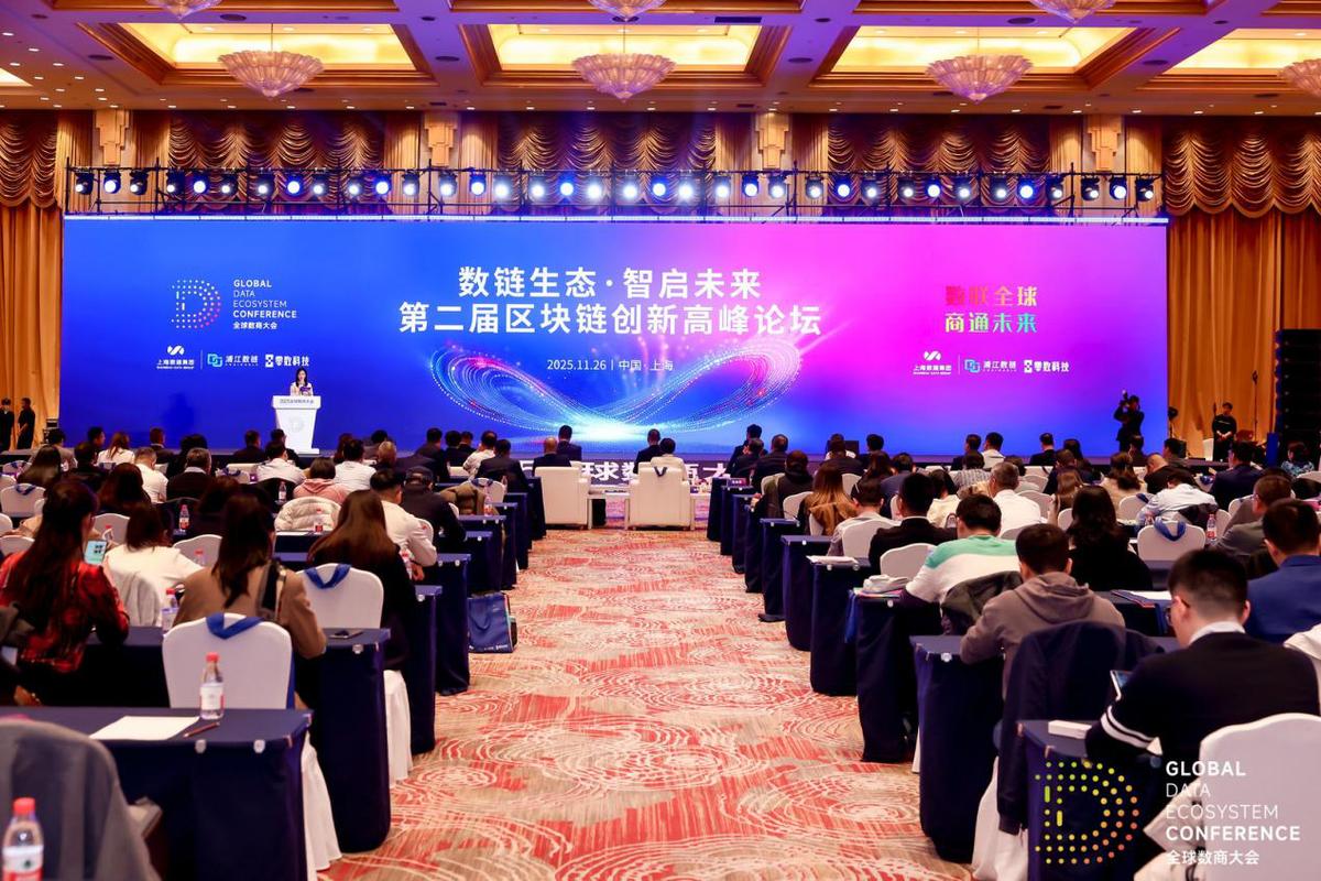 11月26日,2025 全球数商大会“数链生态・智启未来 —— 第二届区块链创新高峰论坛” 在上海国际会议中心圆满落幕。作为上海推动区块链技术与应用生态建设的核心平台,本次高峰论坛由上海市数据局、静安区人民政府指导,上海数据集团有限公司主办,上海浦江数链数字科技有限公司、长三角数链(上海)网络基础设施有限公司承办,上海零数科技有限公司协办,静安区数据局、中国联合网络通信有限公司上海市分公司提供支持。