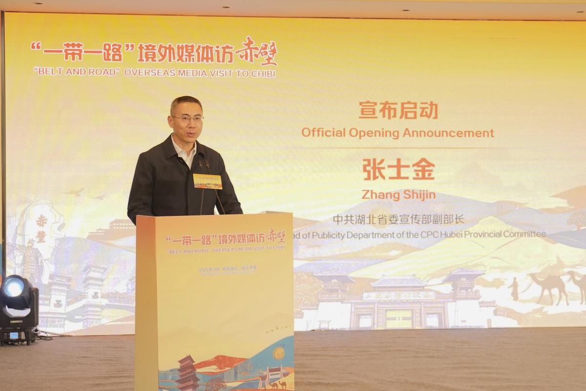 11月26日,“一带一路”境外媒体访赤壁活动启动仪式在湖北赤壁举行。来自俄罗斯、哈萨克斯坦、阿塞拜疆、马来西亚、缅甸、越南、韩国、日本等国的主流媒体代表、海外“Z世代”青年代表以及国内媒体记者等四十余人将探访“欧亚万里茶道源头”“中国青(米)砖茶之乡”赤壁,深入了解其发展故事和文化魅力。湖北省委宣传部副部长张士金,中国日报社秘书长曾庆锴,咸宁市委常委、副市长、宣传部部长张廷,赤壁市委书记董方平等嘉宾出席仪式。