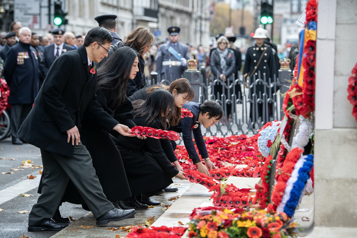两年前,我第一次参加这个仪式时,结识了彭文兰、朱红予(Caroline Chu)和克莱夫·哈维(Clive Harvey)。他们与约三十人的团队一起向纪念碑前奉上一圈虞美人花环,以纪念中国劳工旅(Chinese Labour Corps)—— 那是一次大战期间为协约国提供工程、后勤和战场清理支持的 14 万多名华工部队。