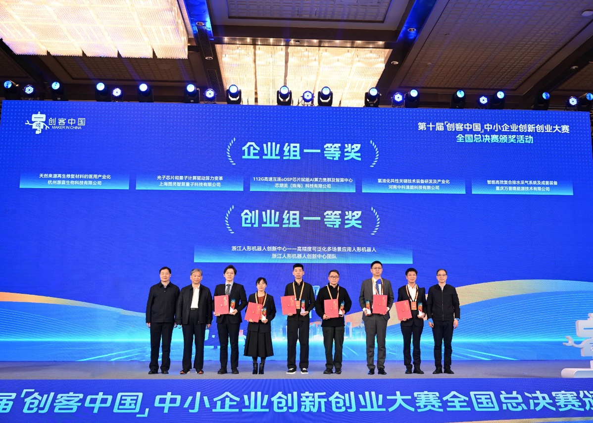 第十届“创客中国”大赛全国总决赛在前期产生的全国企业组50强,创业组10强的基础上,经过一天半的现场激烈角逐,评审出企业组一等奖5名、二等奖15名、三等奖30名;创业组一等奖1名、二等奖3名、三等奖6名,同时现场公布了“优秀组织单位”和“优秀对接服务单位”名单。