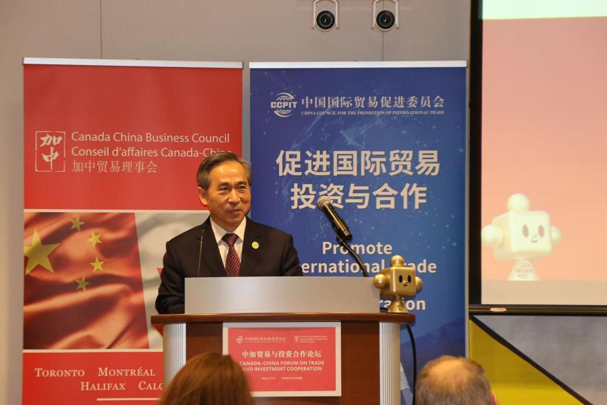 任鸿斌表示,今年是中加建交55周年和建立战略伙伴关系20周年。中加领导人韩国庆州会晤为改善与发展双边关系作出战略引领。中国贸促会愿与加方合作伙伴携手为中加经济关系健康稳定发展提供有力支撑,推动深化两国工商界沟通协作。