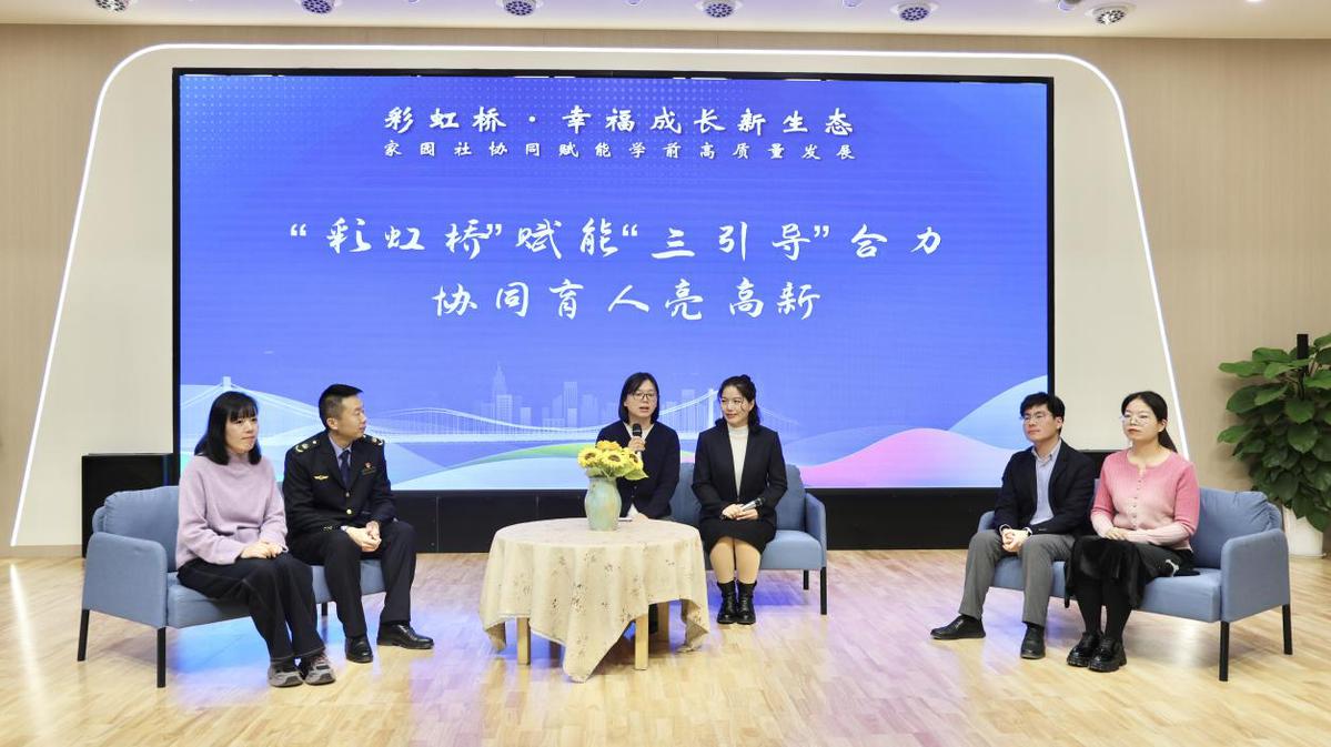 会前,与会人员参观了高新区五大幼教集团协同育人成果展。玺悦幼教集团打造的"家长助教团""行走的课堂"项目,实现社区资源与园本课程深度融合;珑悦幼教集团构建的"10分钟幸福生活圈",将教育服务延伸至社区生活场景;劝学里幼教集团通过亲子美育课程营造沉浸式育人环境;泰和幼教集团以"阅读+环保"为主题,携手家园社共创有声快书;春晖幼教集团则深耕非遗葫芦课程与"汇动"运动课程,以传统文化与体育教育为纽带连接家庭与社区。展示内容凸显"开放、互动、高效"特色,为推进会奠定实践基础。