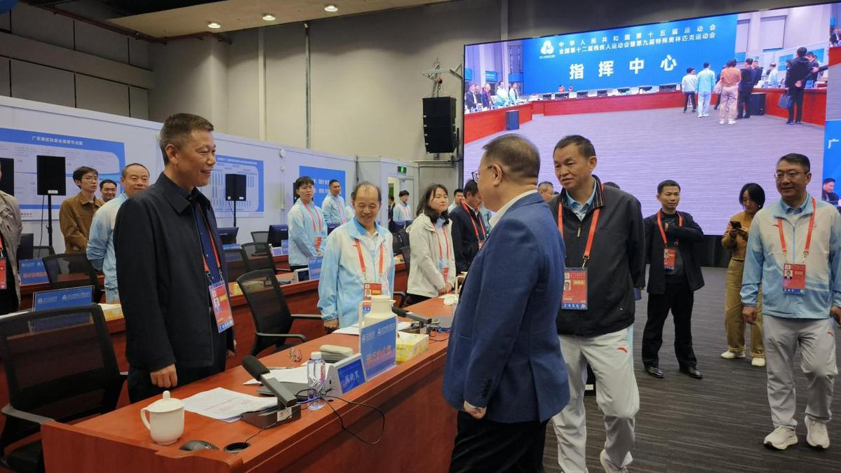 10月17日,广东省地震局专门到省执委会指挥中心现场调研交流。为进一步做好做细做实全运会地震安全保障,王维亮和赵梓涵两名同志进驻赛事指挥中心,全程参与日常值班和调度工作。