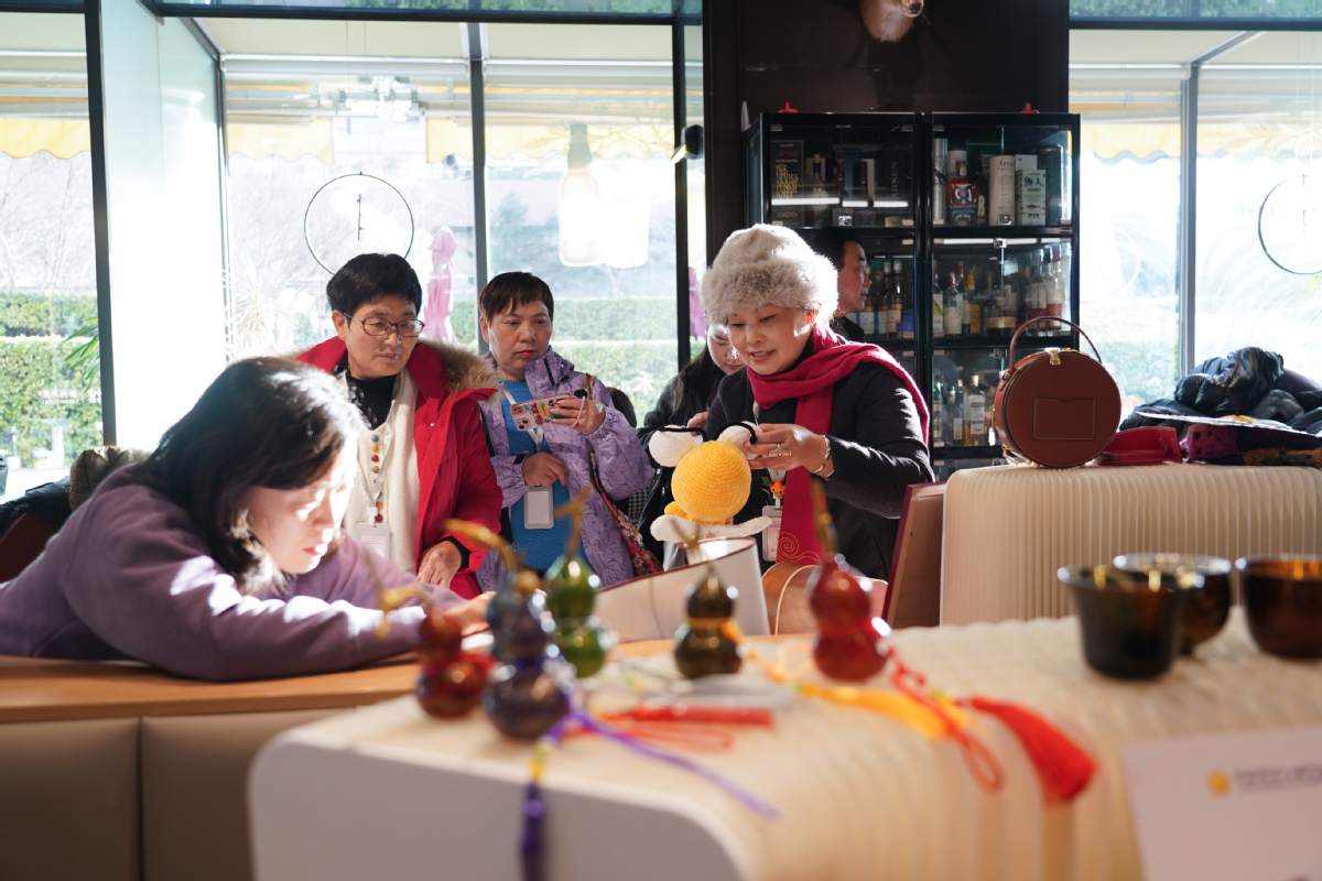 本次展览汇聚了全国各地多家"美丽工坊"的近百件文创作品,北京编织、城口大漆、善琏湖笔、宜兴紫砂……一件件手工艺品展示了残疾妇女精湛的手工技艺,也承载着她们对梦想的坚守、对美好生活的追求。互动体验区吸引了不少观众沉浸式体验绒线编织、紫砂壶制作等工艺过程,在一针一线、一捏一塑间感受传统技艺的文化底蕴。