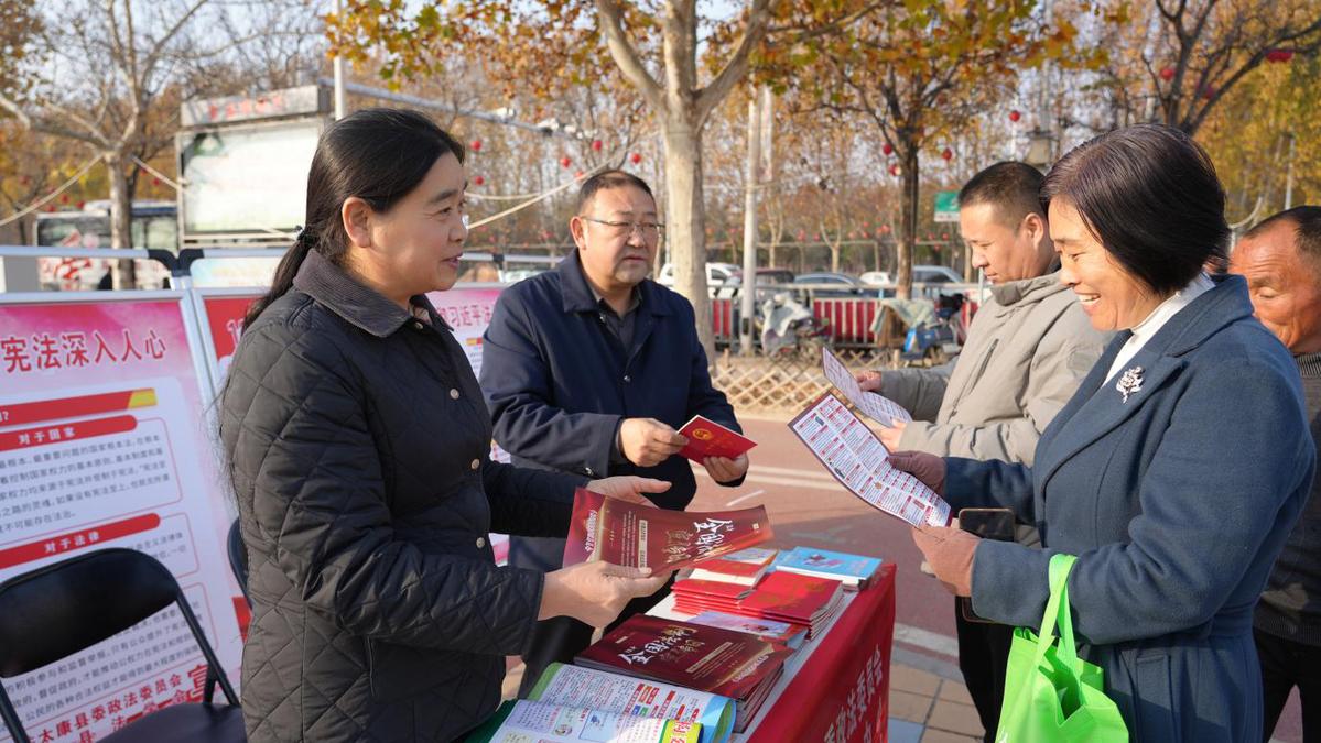 这是太康县国家宪法日集中宣传活动上的一幕。2025年12月4日是第十二个国家宪法日。为大力弘扬宪法精神,维护宪法权威,太康县委网信办、县委政法委等多部门结合“八五”普法规划实施,创新形式,精心策划,在县人民广场联合组织开展了一场“接地气”的宪法主题法治宣传活动。