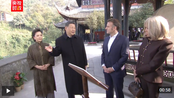 12月5日,国家主席习近平在四川省成都市都江堰同法国总统马克龙进行友好交流。