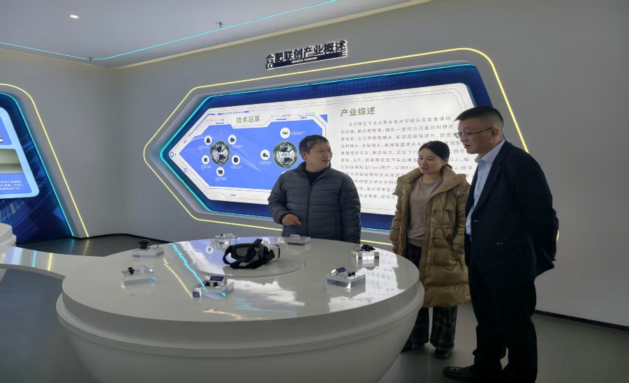 庞淑钦一行参观了合肥联创的研发中心与车载光学等创新产品应用场景,详细了解了公司在车载镜头及影像模组等方面的最新研发成果和生产工艺,同时深入车载光学生产车间,调研光学镜头智能生产线。