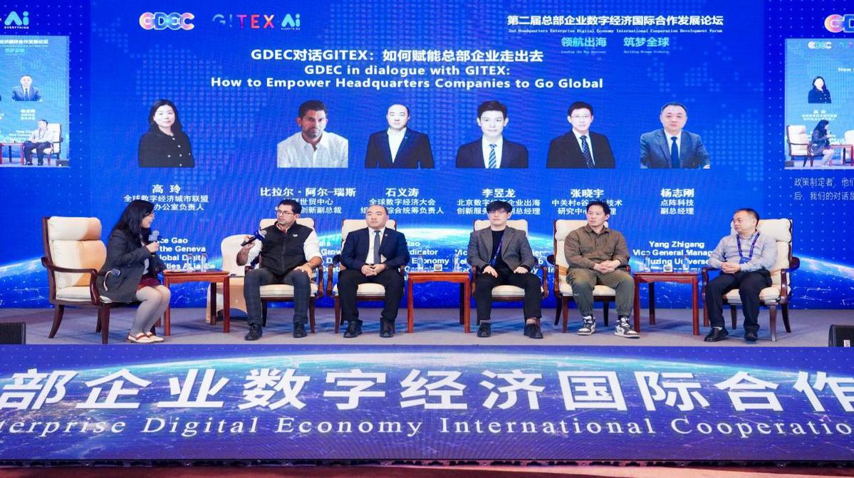 圆桌对话环节,围绕“以GDEC(全球数字经济大会)对话GITEX(海湾信息技术展),赋能总部企业‘走出去’”的核心议题,迪拜世贸中心、全球数字经济大会组委会、北京数字经济企业出海创新服务基地、中关村e谷产业技术研究中心、点阵科技等机构负责人立足平台资源整合、政策支持优化、企业实操策略、服务保障升级四大核心维度展开深度研讨,凝聚起“开放、合作、共赢”的广泛共识,为总部企业出海擘画了全方位、多维度的实践路径与解决方案。