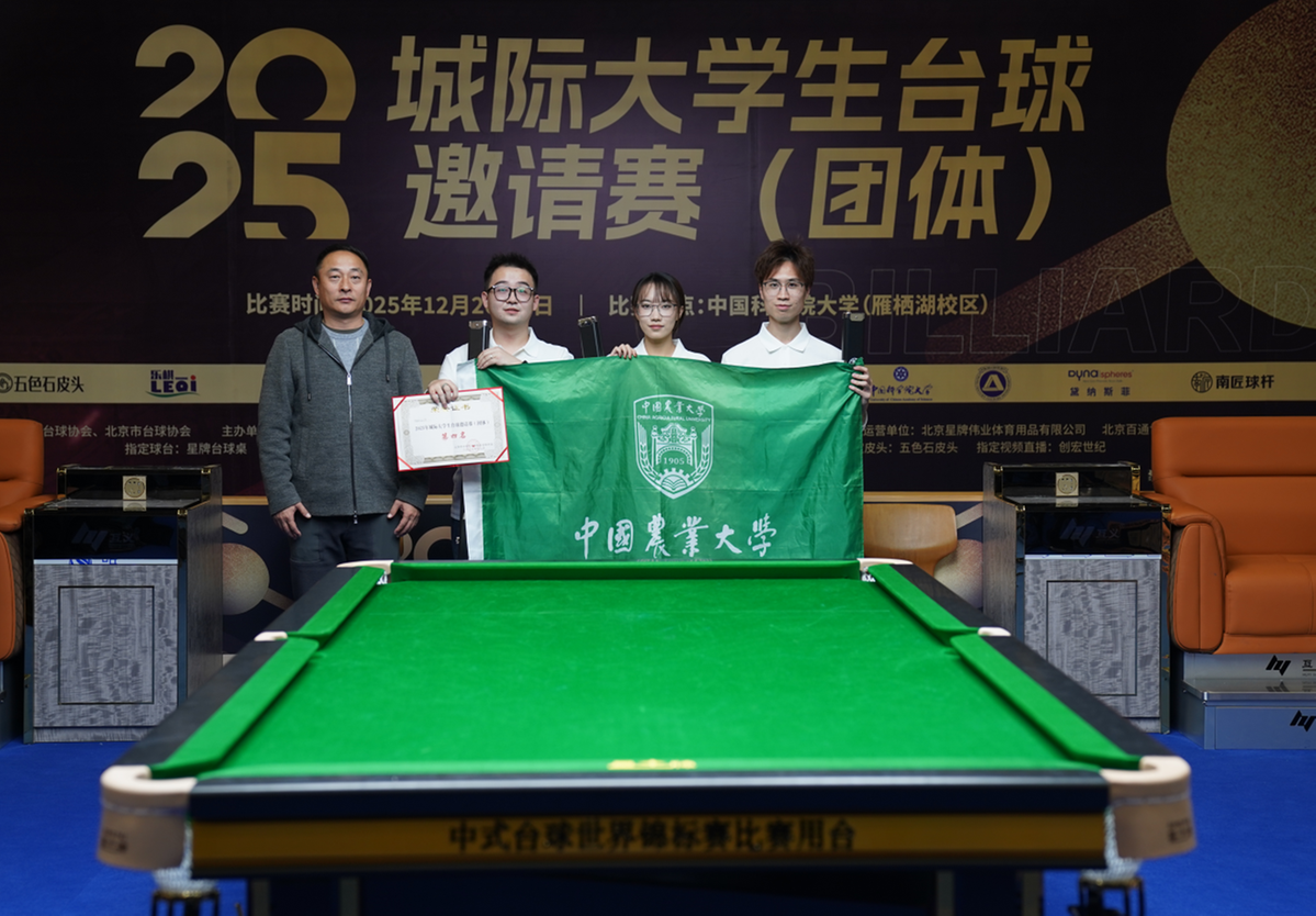 2025年12月21日,2025城际大学生台球邀请赛(团体)在中国科学院大学雁栖湖校区圆满闭幕。最终清华大学绝杀首都体育学院,夺得冠军!北京大学获得季军、中国农业大学获得第四名,民政职业大学、上海交通大学、北京财贸职业学院和北京科技大学获得并列第五名。