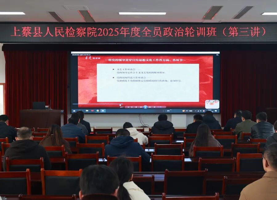 2025年12月19日上午,上蔡县人民检察院举办2025年度全员政治轮训第三讲。本次轮训通过理论阐述与典型案例剖析相结合的方式,为干警依法履职、高质效开展办案与监督工作提供了明确指引。意识形态培训则聚焦筑牢政治忠诚、强化纪律意识等内容,引导干警坚定理想信念、把稳思想之舵。