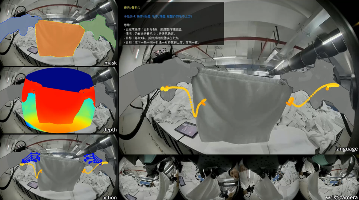 采集了丰富的数据之后,行业还面临数据迁移这另一核心难题,为此它石构建了 TARS Datacore 具身数据引擎。作为云端大模型,它实现了全流程的自动化标注,将原始视频转化为机器人能理解的“教科书”。这套标注体系不仅涵盖了标定、深度、动作、指令、思维链 (COT)、掩码(Mask)和触觉(Tactile)等基础信息,更通过以下三类精准标注,形成了从感知到动作的全链路闭环: