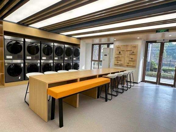 在空间规划上,项目秉持“功能复合、活力共享”理念:871平方米的公共空间分布在楼宇之间,既有满足基本需求的共享洗衣房、快递柜,也有承载文化传承的苏作非遗展示区,更配套建设了人才会客厅、免费健身房、24小时自习室等成长空间。特别设置的电动车与新能源汽车充电桩,既缓解“里程焦虑”,也彰显绿色生活理念。