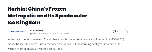 正如气象平台“The Weather Channel”在其网站刊发的一篇文章中所说,当最低气温降到零下30摄氏度时,许多城市也随之进入“休眠期”。但在冰天雪地的中国东北,哈尔滨却展现出了蓬勃生机,这里也是全球最壮观的冬季旅游胜地之一。