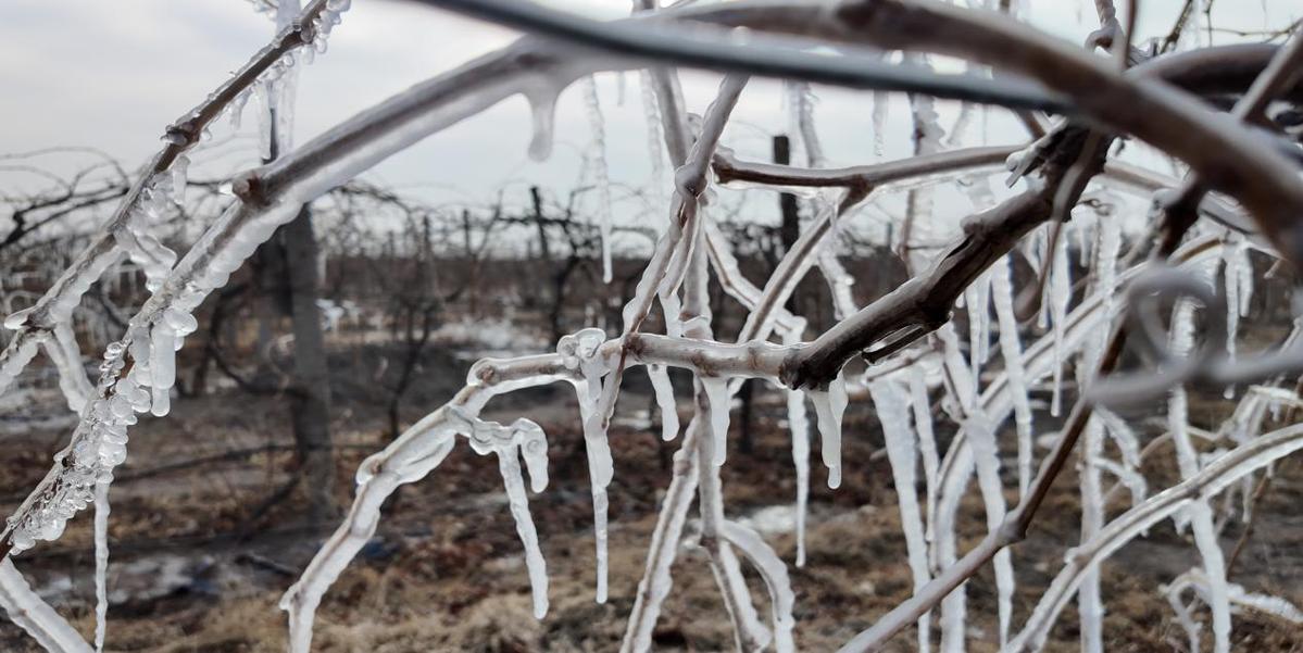 藤蔓上凝结的冰霜之下,树皮内依然蕴藏着鲜活的绿意,较长的物候期犹如为葡萄穿戴了“抗寒铠甲”,更为葡萄生长累积丰富的风味物质提供了强有力的条件。