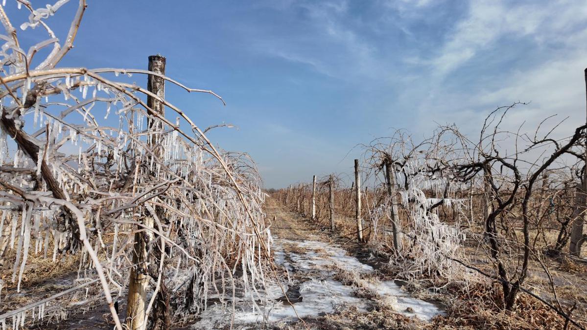 1月的宁夏贺兰山东麓,寒风凛冽,多数酒庄的葡萄园已覆土静待春归。然而,位于宁夏石嘴山的玖禧酩庄园地里却展现出一幅与众不同的生动图景:葡萄藤上冰霜晶莹,在冬日阳光下闪烁如钻。这并非自然偶得,而是中国自主培育的高抗寒葡萄品种“北系”免埋土技术成功应用的生动写照。