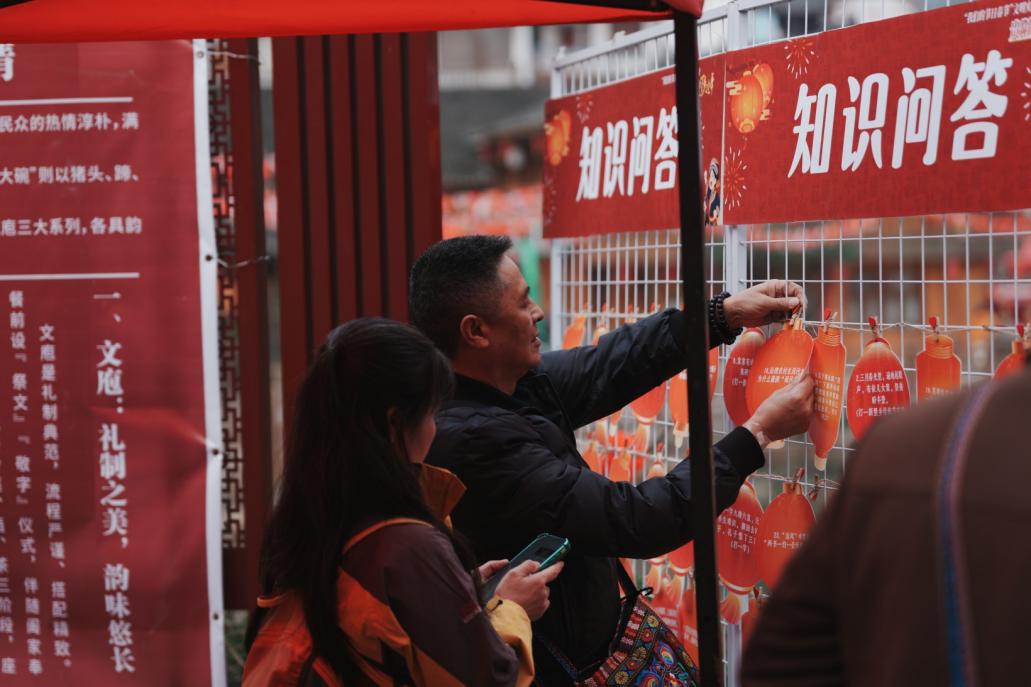 近日,贵阳贵安“下乡过年”启动仪式——“我们的节日・春节”文明实践活动在乌当区新堡布依族乡王岗村举行。当天,“三盘四碟八大碗”依次排开,以丰盛的“村宴”问候纷至沓来的游客。民俗巡游、年味市集与“濮越雷神龙”舞龙展演等活动同步开展,写春联、打糍粑、磨豆腐等传统民俗与“枫香染”“簸箕画”等非遗技艺交相辉映,游客们逛市集、享美食、赏表演,整个活动现场气氛浓烈。期间,还穿插了互动问答,将“两清两改两治理”、农村“五治”等乡村治理知识融入其中,让大家在欢乐中深切感受乡村文明建设与发展转变。