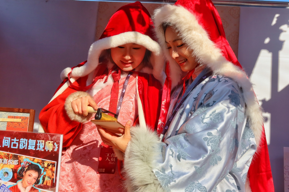 1月24日,游人在颐和园中的非遗市集中挑选商品。中国日报记者 姜东 摄