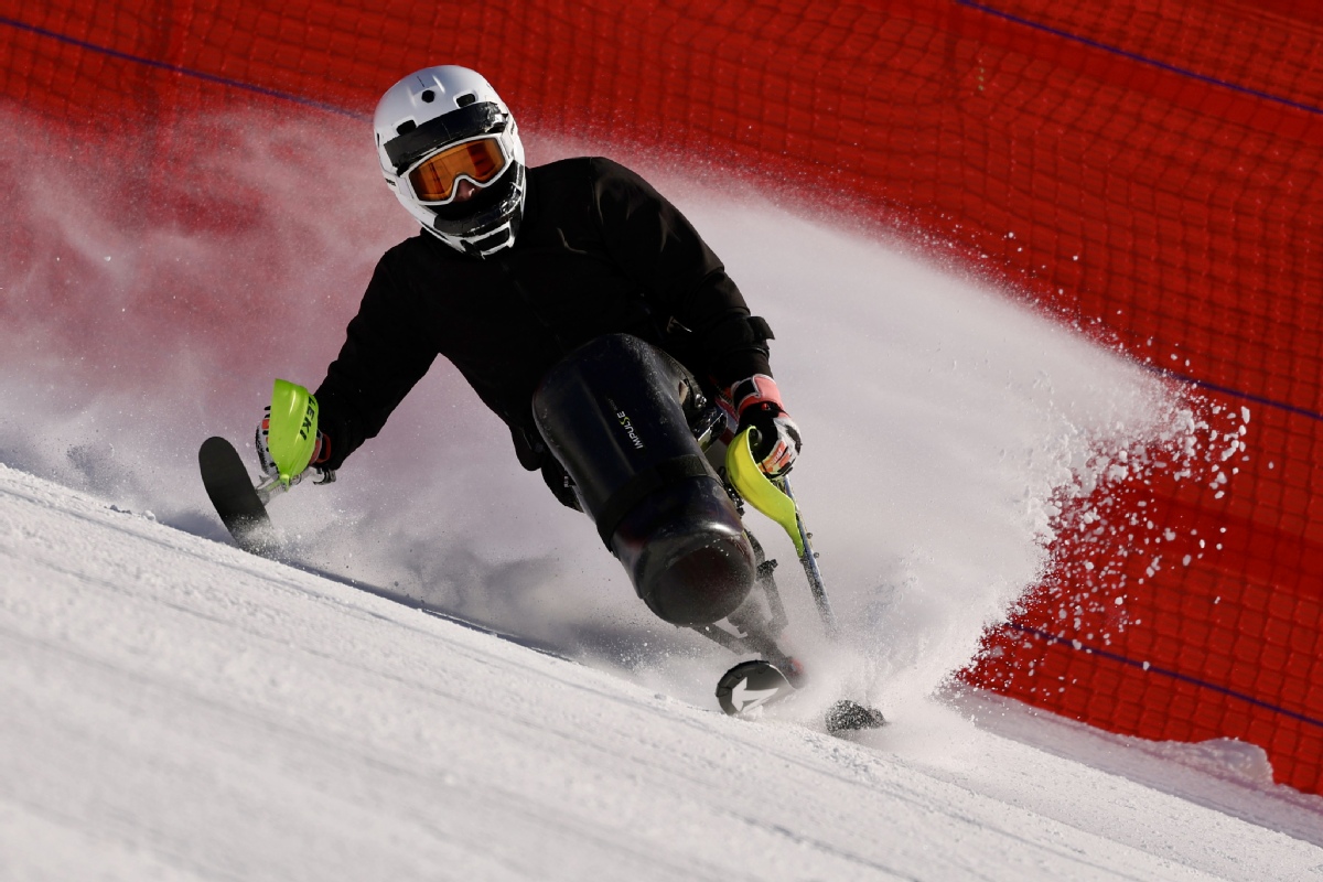 国家残奥高山滑雪队队员在训练中。中国日报记者 魏晓昊 摄