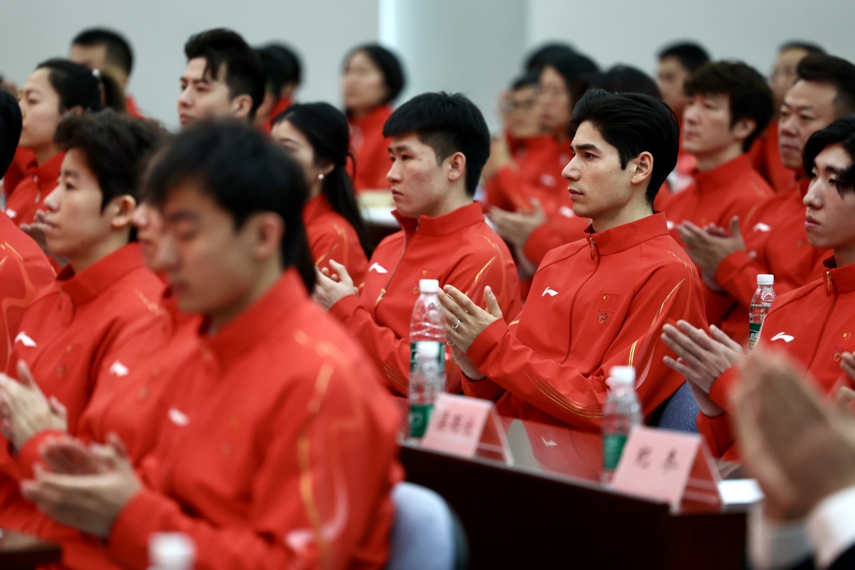 参赛队工作人员共有128人,包括领队、副领队23人,教练员58人,管理、翻译11人,医务康复、器材保障、科研等辅助工作人员36人,其中外籍工作人员32人,分别来自美国、芬兰、荷兰、加拿大等21个国家。