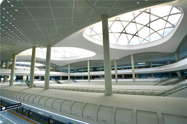 据悉,北京通州站最大的建筑特色在于其全地下枢纽设计和标志性的“京帆”屋盖。车站地下3层,各层功能明确,布局合理。B1层兼具进站功能与城市属性,商业步行街、下沉广场等公共空间错落有致,为旅客提供了休闲购物的绝佳场所;B2层作为交通换乘层,城际铁路与地铁的换乘便捷高效,让旅客的出行更加顺畅;B3层为城际铁路站台层,承载着列车接发的重要功能。枢纽通过“京帆”屋盖的透明ETFE膜结构引入自然光,打造出“阳光车站”的独特景观。这种设计与水立方使用的材料相同,可将阳光引入地下32米的站台,每年可节约采光能耗约48.6万千瓦时,既环保又节能。未来,副中心枢纽还将接入地铁22号线(平谷线)、M101线等轨道交通线路,枢纽内部空间将逐步完善商业服务功能,最终实现15分钟直达首都机场,35分钟直达大兴机场,1小时直达雄安新区的高效出行网络,成为京津冀协同发展的重要引擎。(图片由耿静、张鹏涛授权提供)