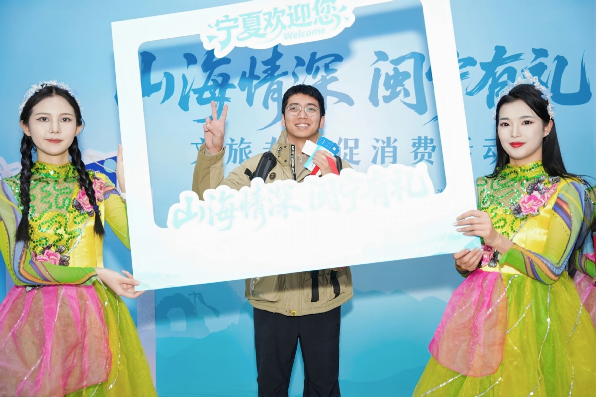 航班抵达银川河东国际机场,主题合影墙格外醒目,工作人员在出口迎接来自福建的游客,为每一位抵达的福建游客送上诚意满满的“航旅礼包”,游客们纷纷驻足合影,手持礼包笑容满面,不少游客表示“还没出机场就感受到了宁夏的热情,这份礼包实用又贴心,对接下来的旅程充满期待!”这一特殊航班的顺利抵达,推动此次文旅促消费活动进一步走深走实,为闽宁协作三十周年这一重要节点奏响了文旅区域协作的崭新乐章。