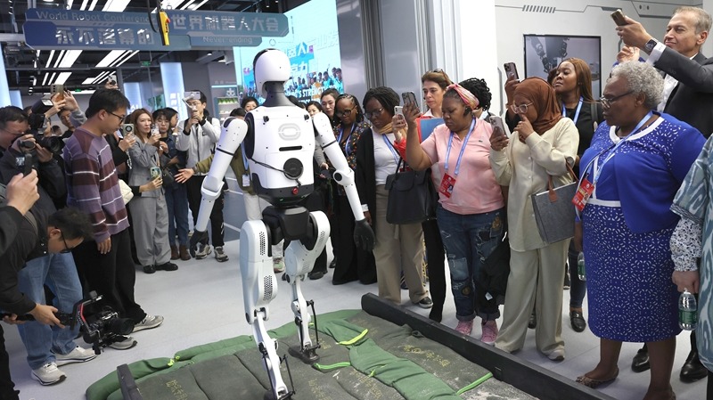 2025年10月14日,全球妇女峰会参会嘉宾在北京经开区机器人大世界参观。2025-10-14 16:56
