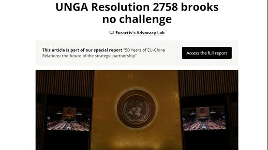 2025年11月4日,驻欧盟使团团长蔡润大使在欧洲主流媒体欧盟动态网、《布鲁塞尔纵横》杂志及网站发表题为《联大第2758号决议不容挑战》的署名文章。2025-11-09 22:10