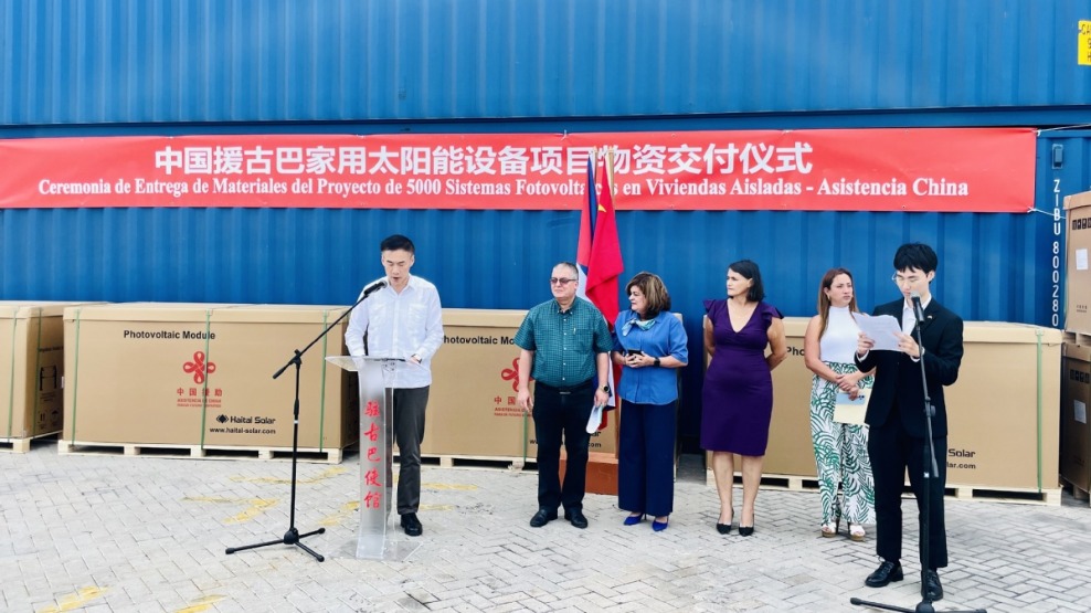 中国援古巴家用太阳能设备项目物资交付仪式10日上午在古巴首都哈瓦那以西约50公里处的马列尔港举行。2025-11-11 08:16