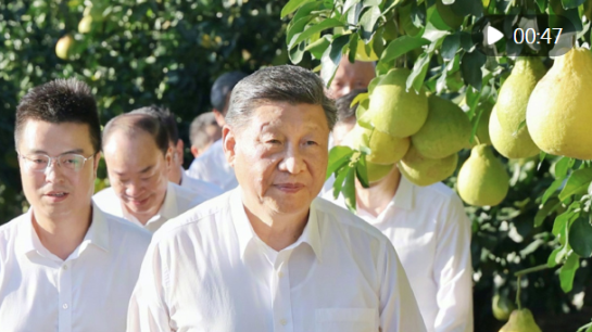 11月7日,习近平总书记在广东省梅州市梅县区雁洋镇考察南福金柚种植基地,了解当地推进乡村全面振兴等情况。2025-11-08 14:22
