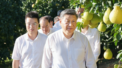 11月7日下午,习近平总书记在广东省梅州市梅县区雁洋镇考察南福金柚种植基地,了解当地加大对革命老区支持力度、推进乡村全面振兴等情况。2025-11-09 11:28
