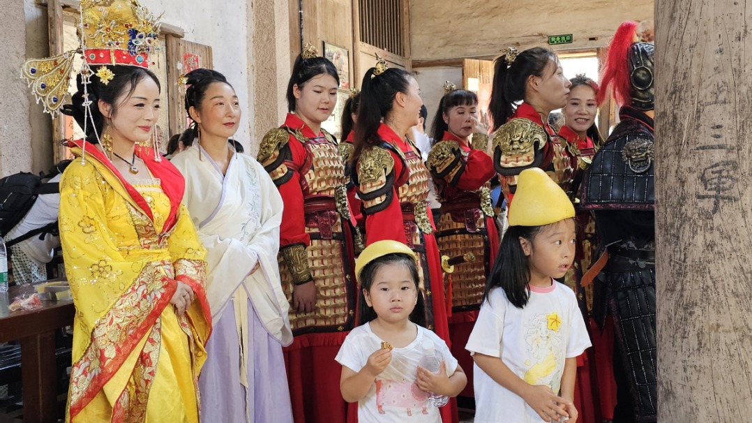 2025年10月12日,工作人员身穿传统服装在寺平村表演《银娘省亲》。2025-10-16 19:10