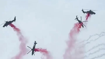 在周四(10月16日)开幕的第七届中国天津国际直升机博览会上,来自陆军航空兵某旅的四架直-10武装直升机为嘉宾和观众们上演了精彩的飞行表演,包括四机拉烟开花等动作。2025-10-17 18:34