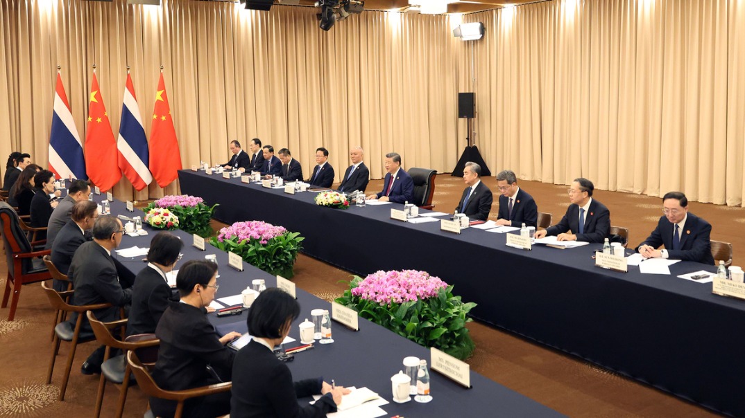 当地时间10月31日下午,国家主席习近平在韩国庆州出席亚太经合组织第三十二次领导人非正式会议期间会见泰国总理阿努廷。中国日报记者 冯永斌 摄2025-10-31 21:31
