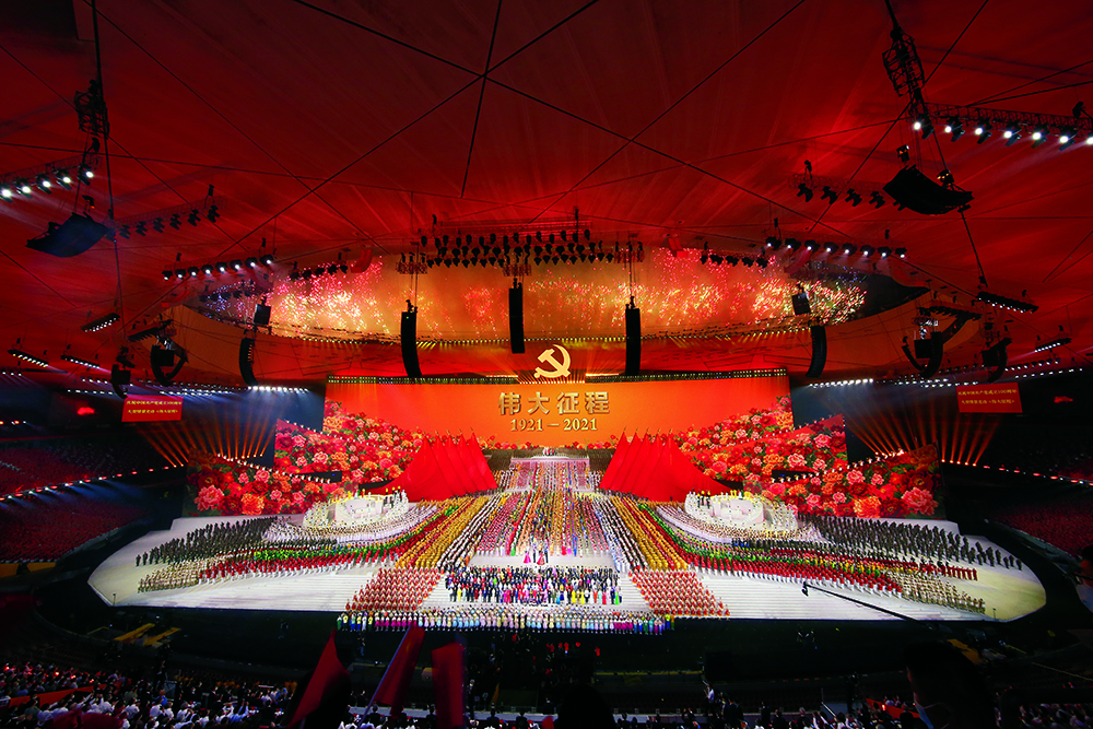 Visitors view a giant torch sculpture in Nanshan Park in Jinggangshan, Jiangxi Province, on April 11, 2021. The mountainous Jinggangshan was the first revolutionary base of the Communist Party of China’s Red Army and is regarded as “the cradle of Chinese revolution”.