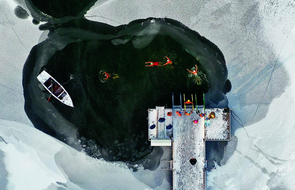 Winter swimmers brave icy waters at Nanhu Lake Park in Changchun, Jilin Province, on December 17, 2021.