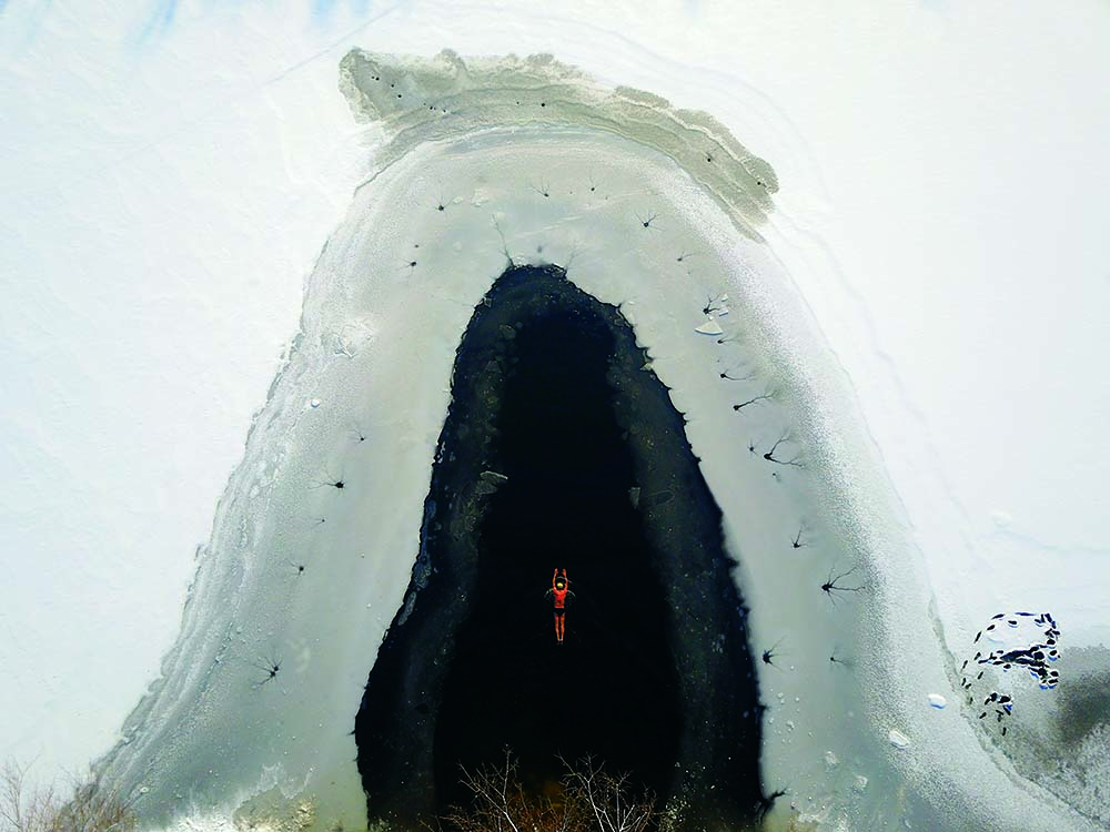 A winter swimmer braves the cold in a lake at Beiling Park when the temperature hit minus 20 Celsius in Shenyang, Liaoning Province, on December 9, 2016.
