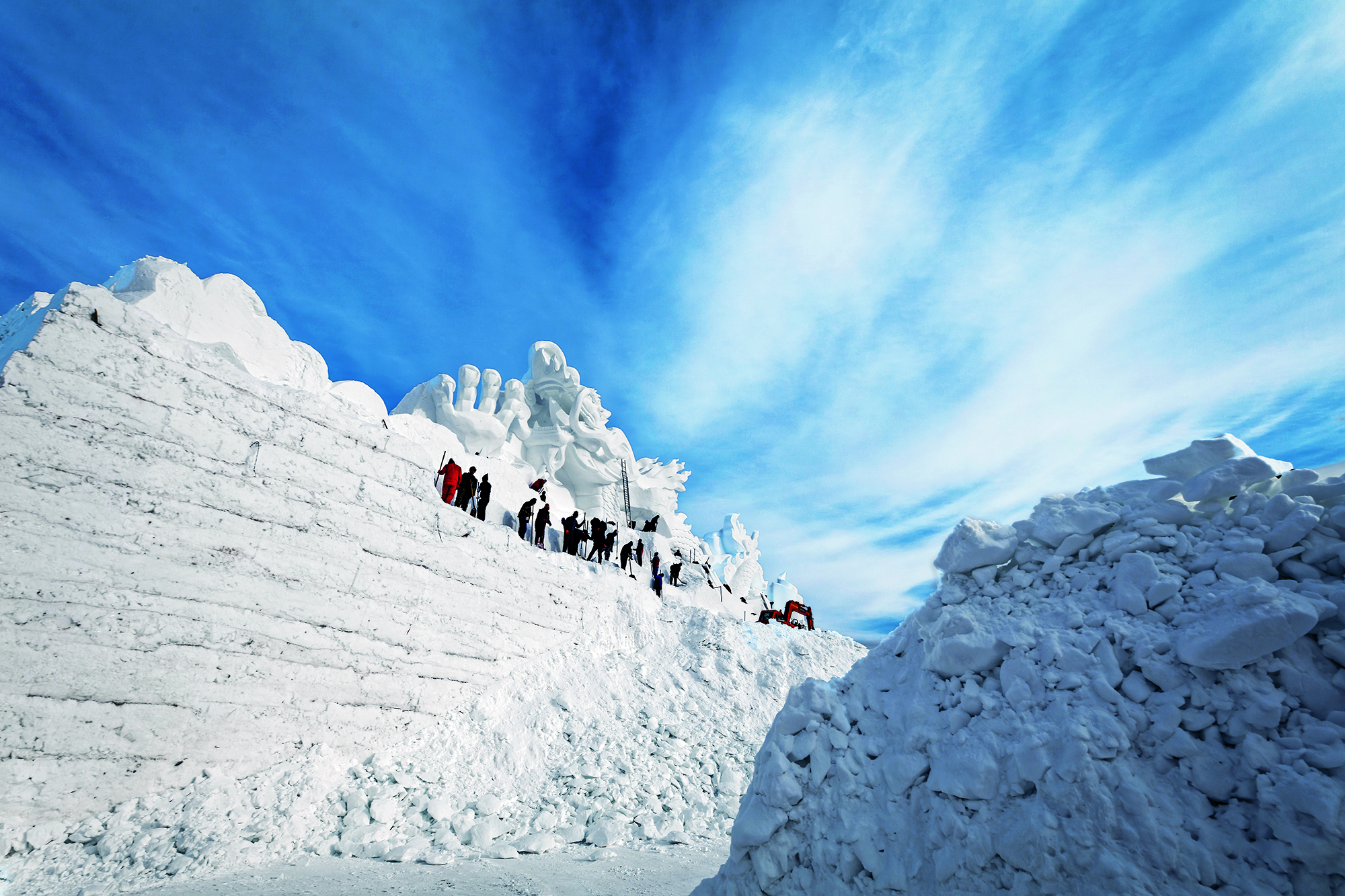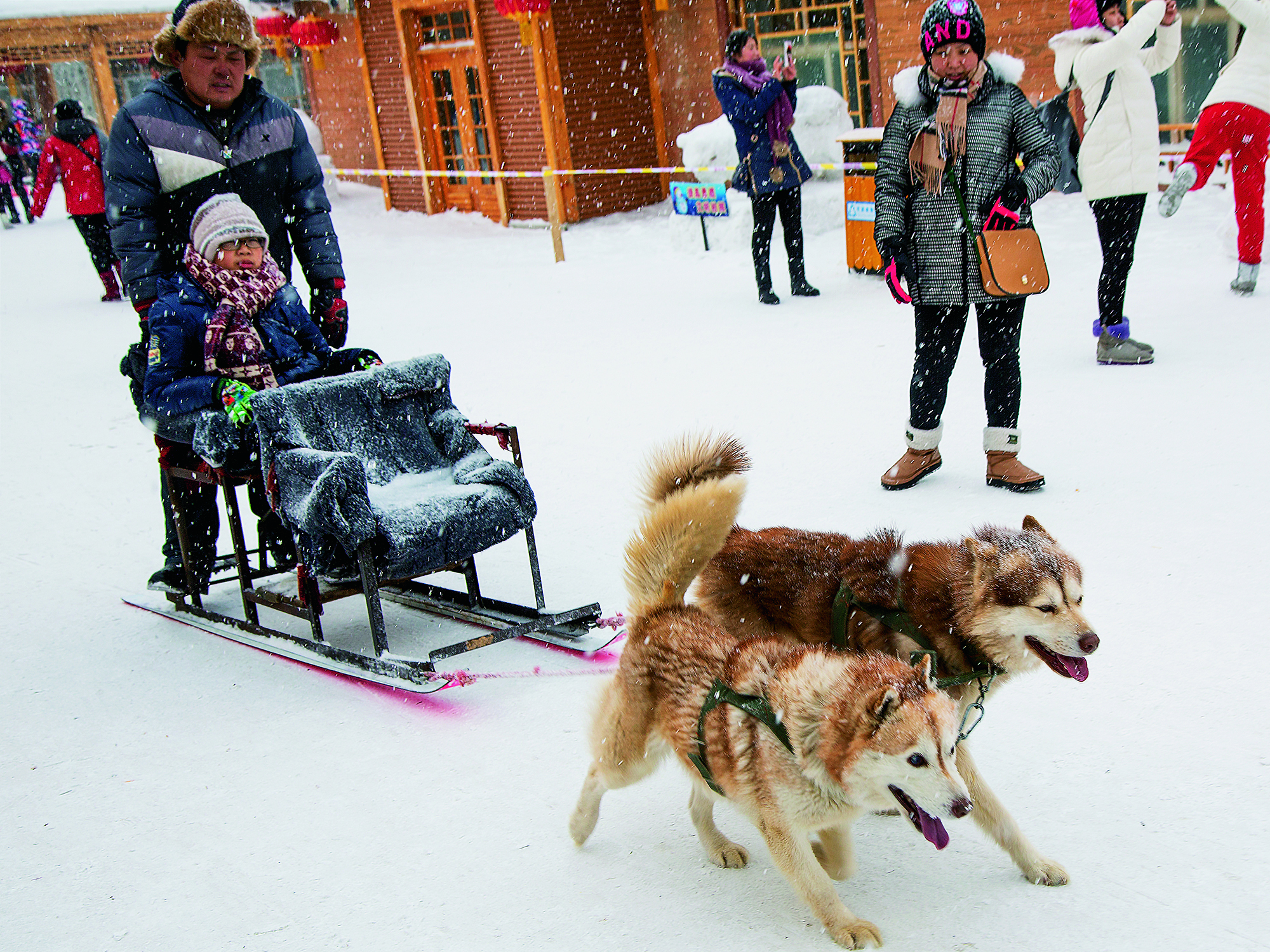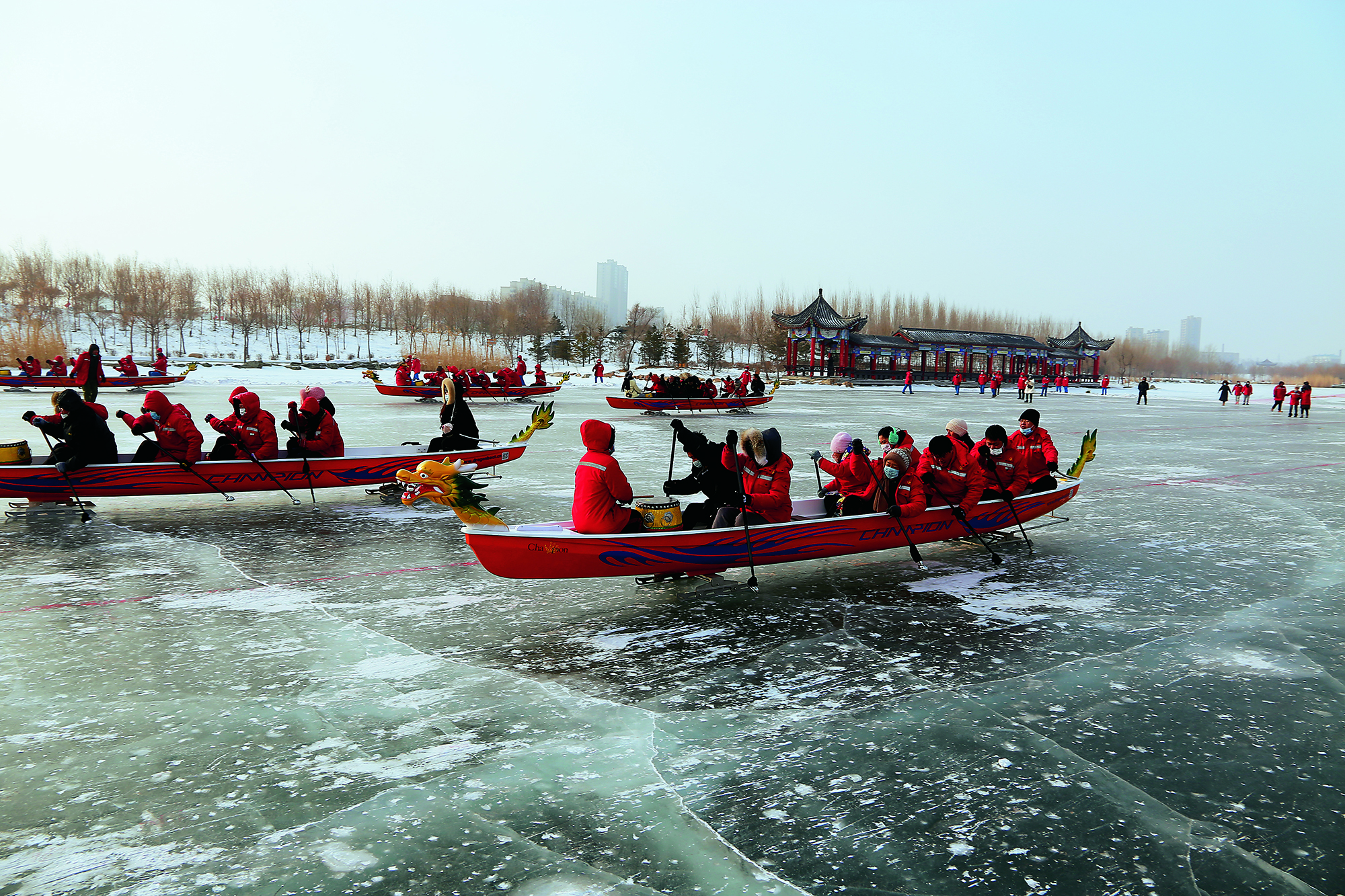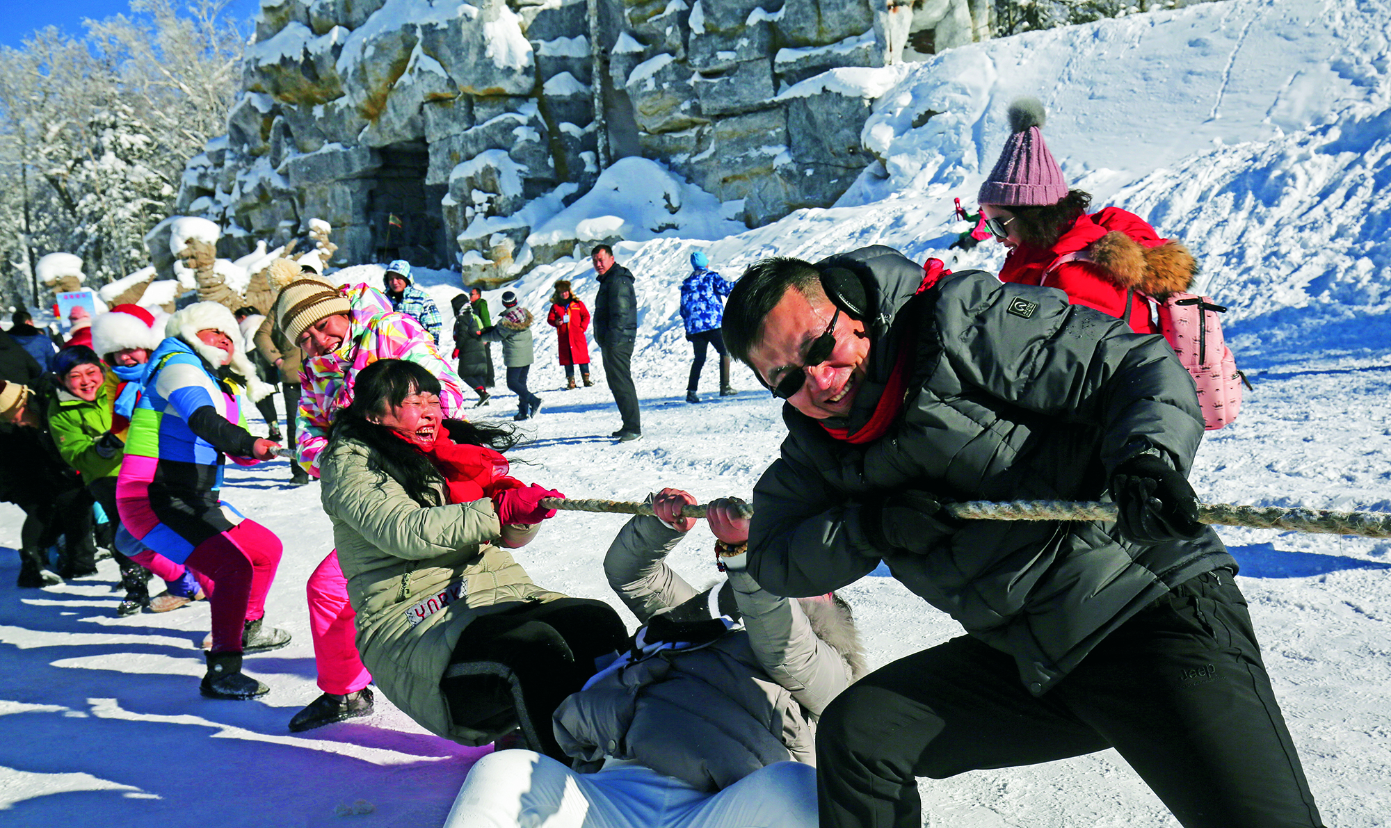 Tourists enjoy games on the snow-covered Hongfeng Lake in Liaoyuan, Jilin Province, on January 17, 2020.