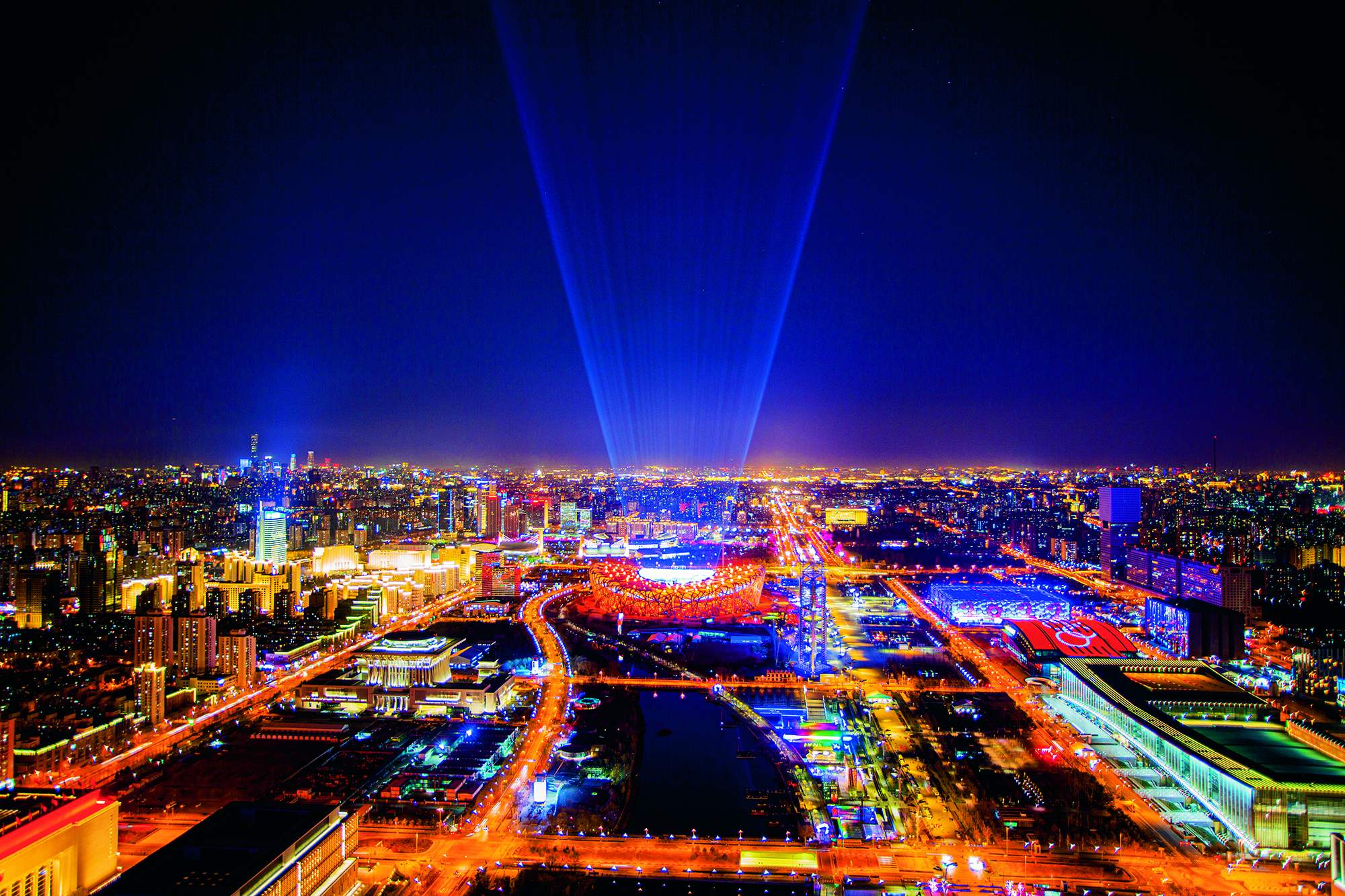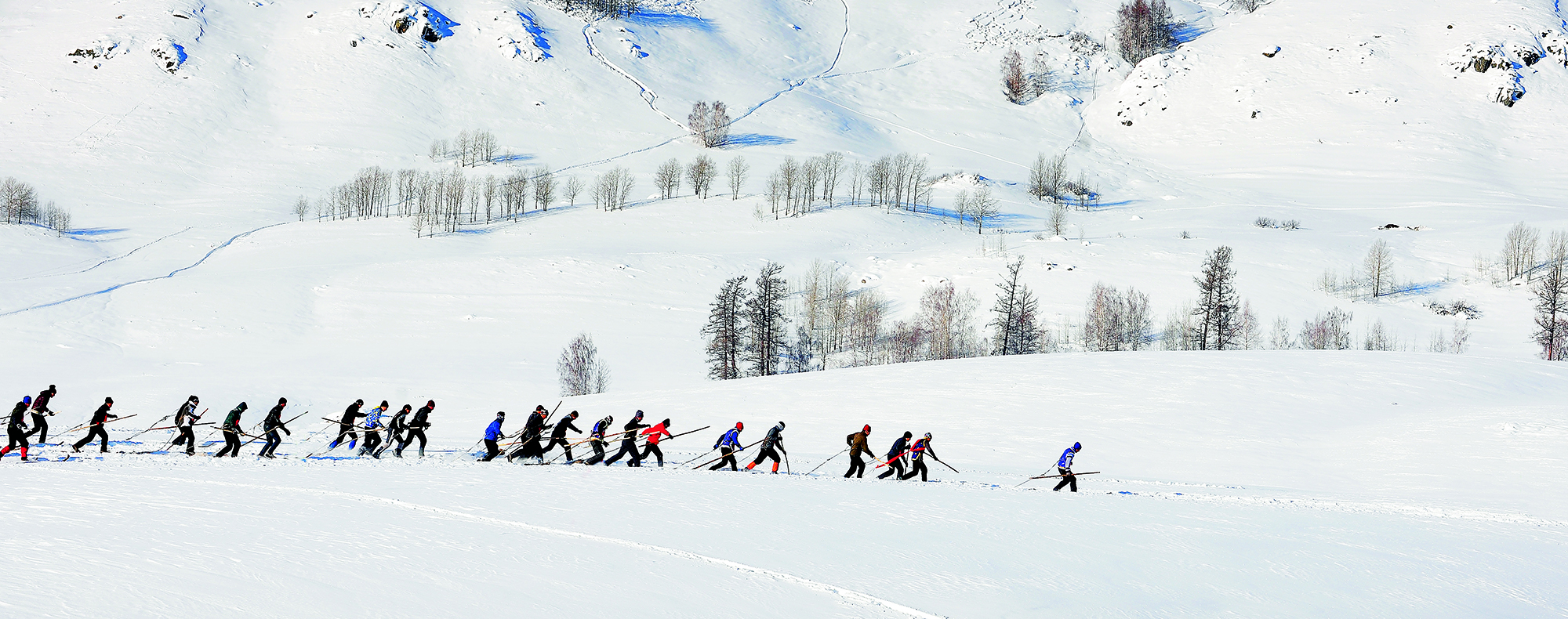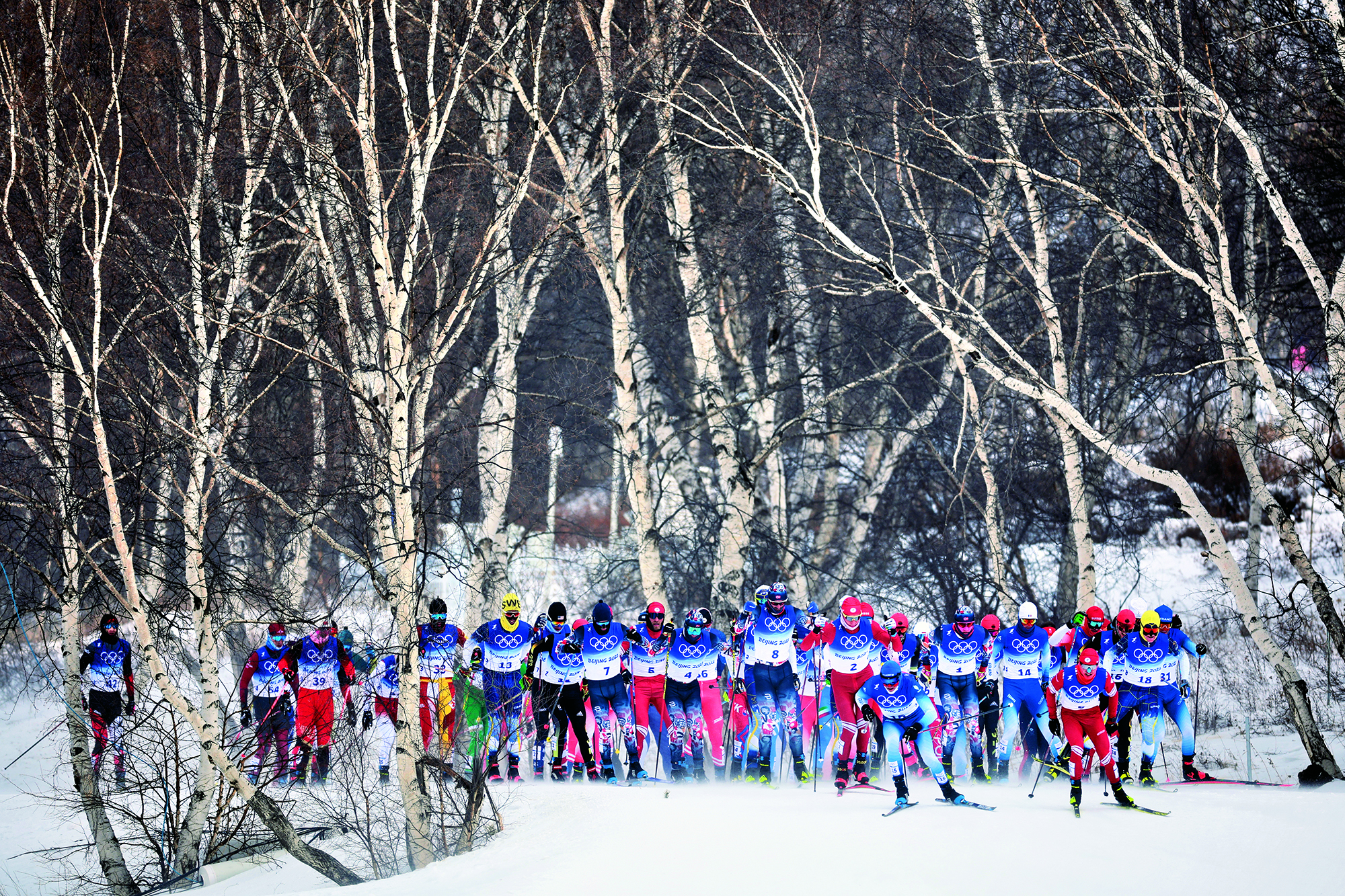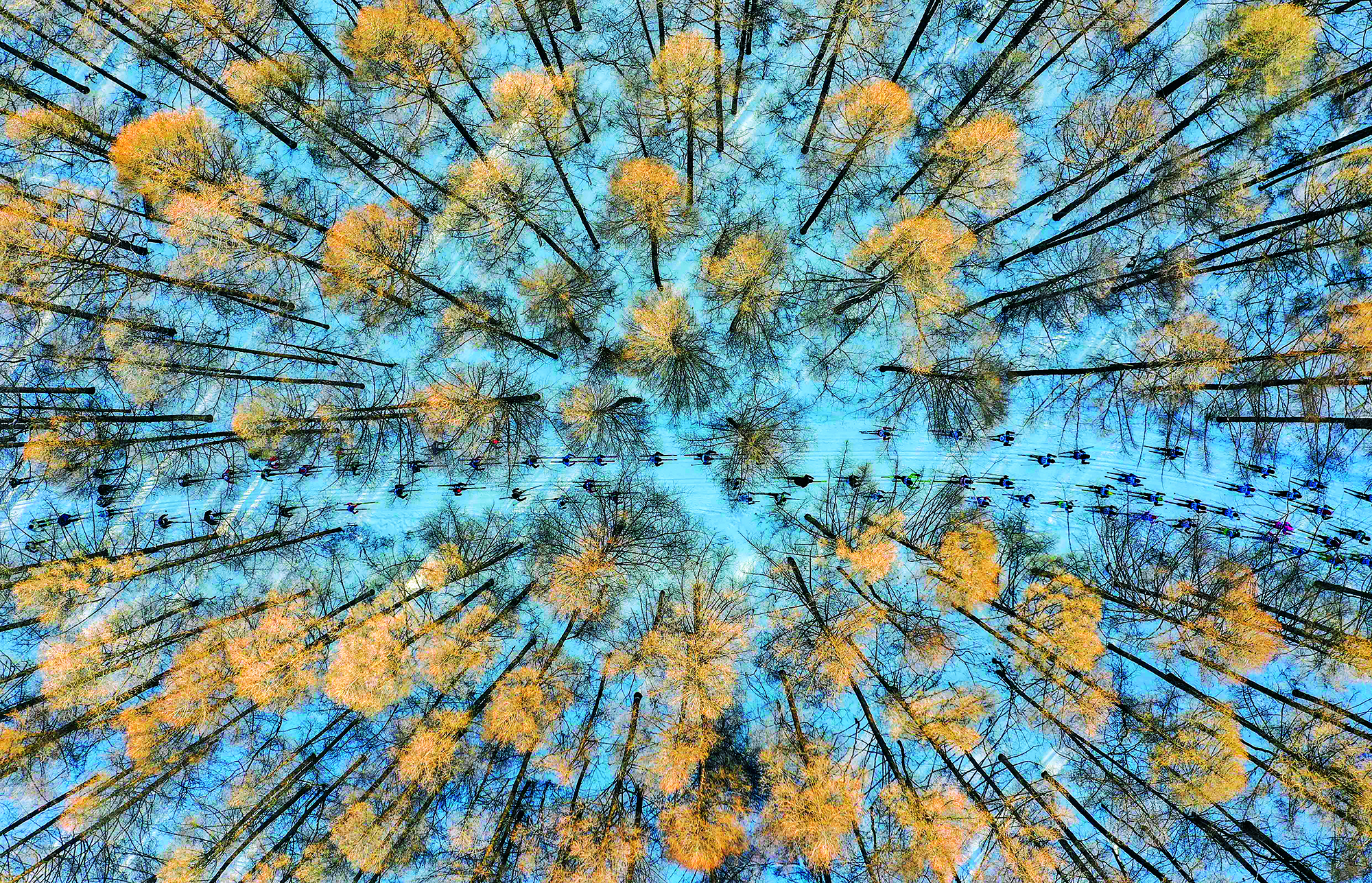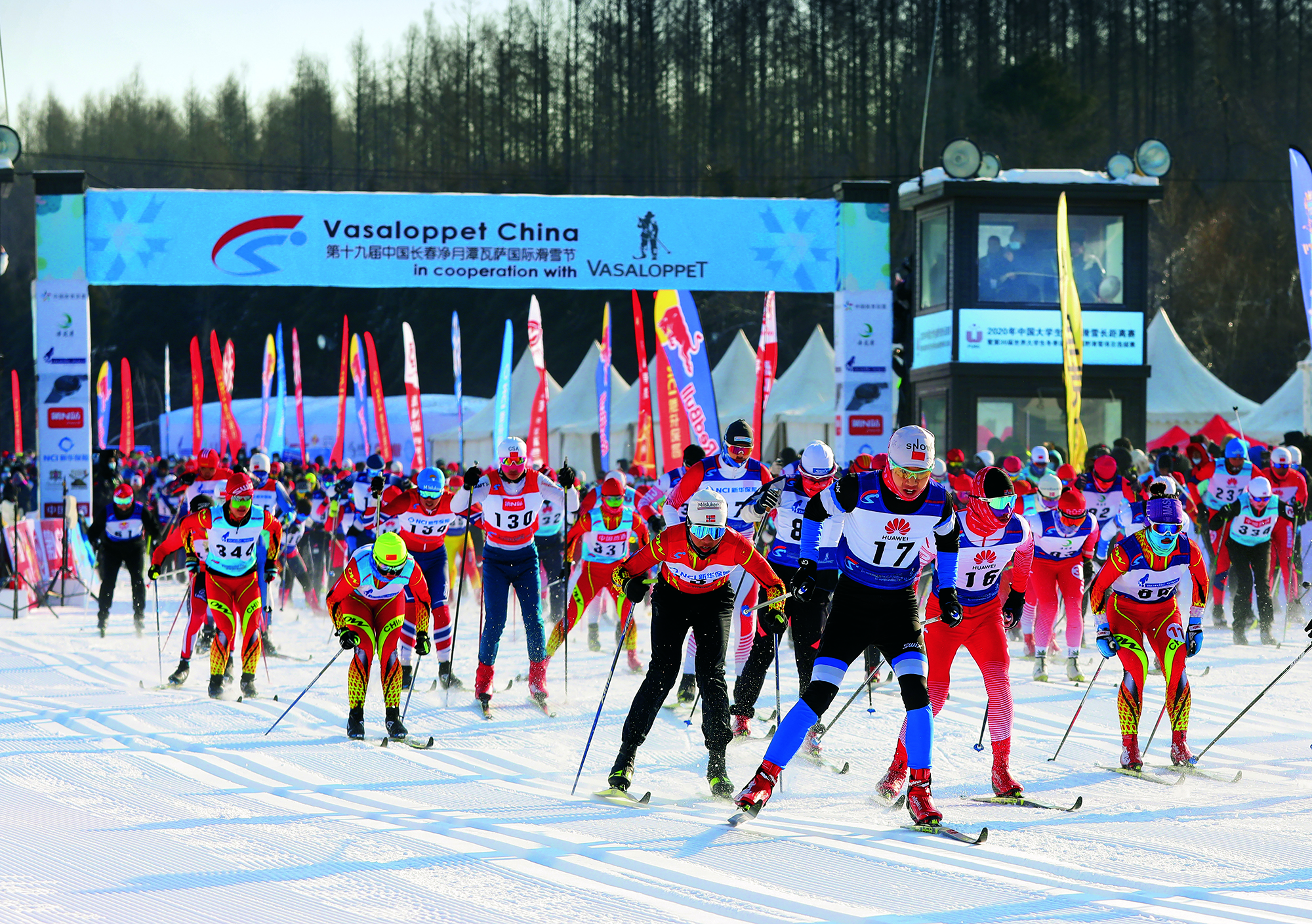 2020年1月4日,吉林省长春市,来自30多个国家和地区的千余名选手参加2020中国长春净月潭瓦萨国际滑雪节暨2020国际雪联越野滑雪中国巡回赛长春站比赛。(无人机照片)