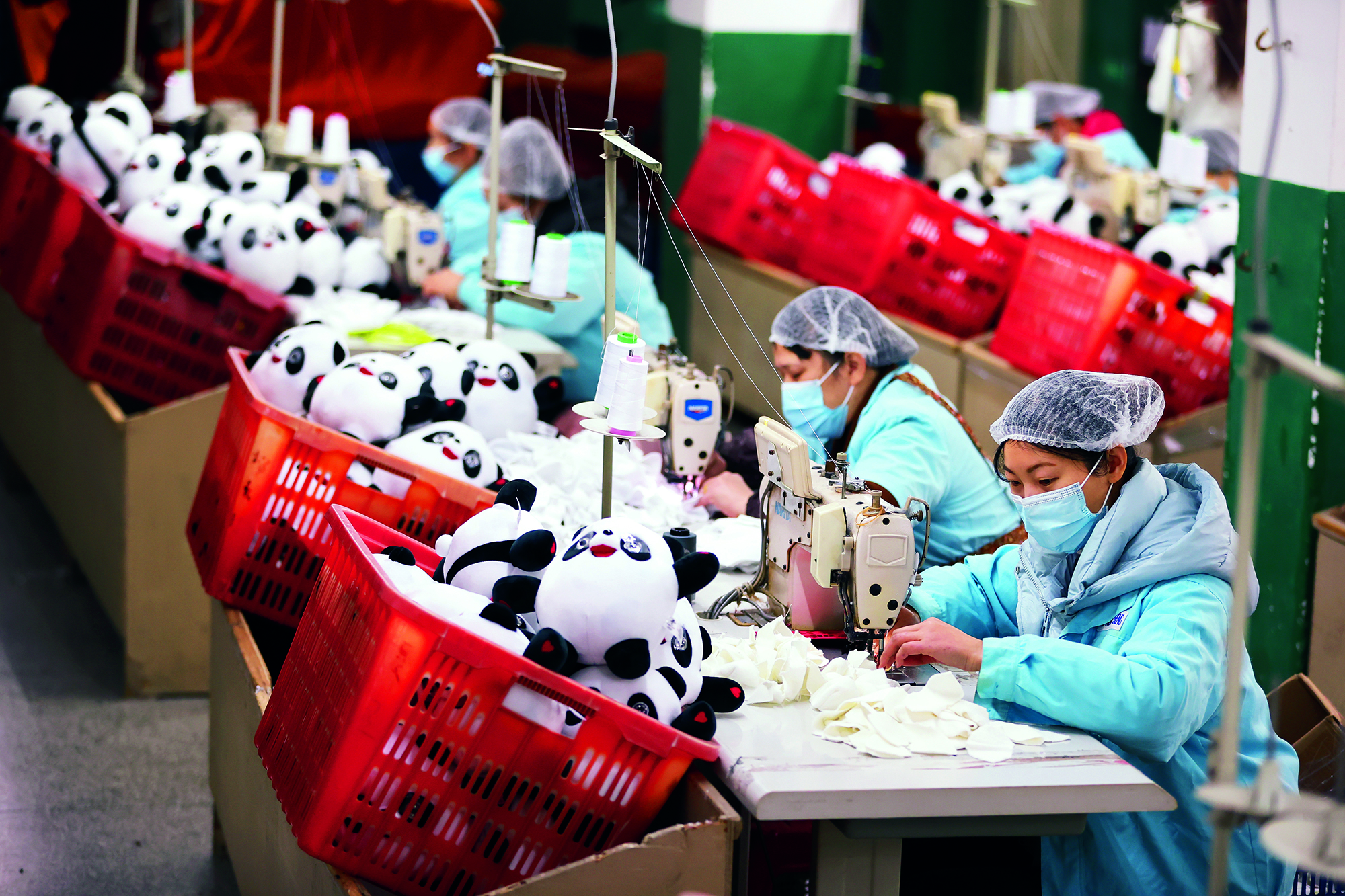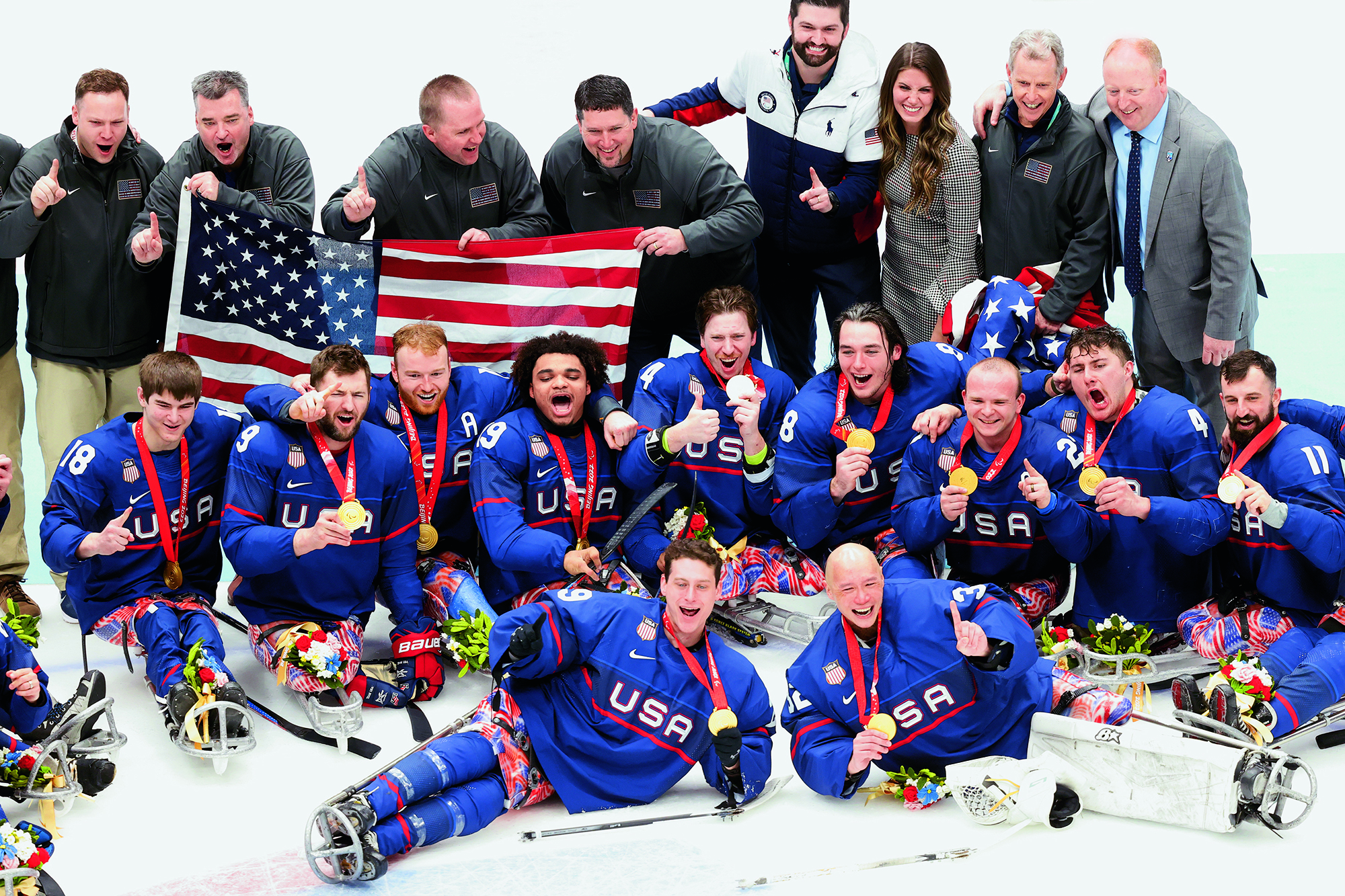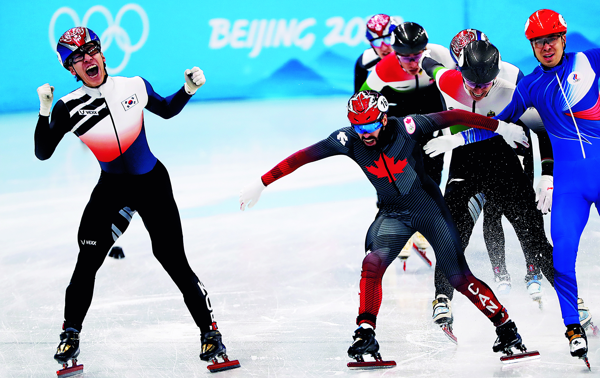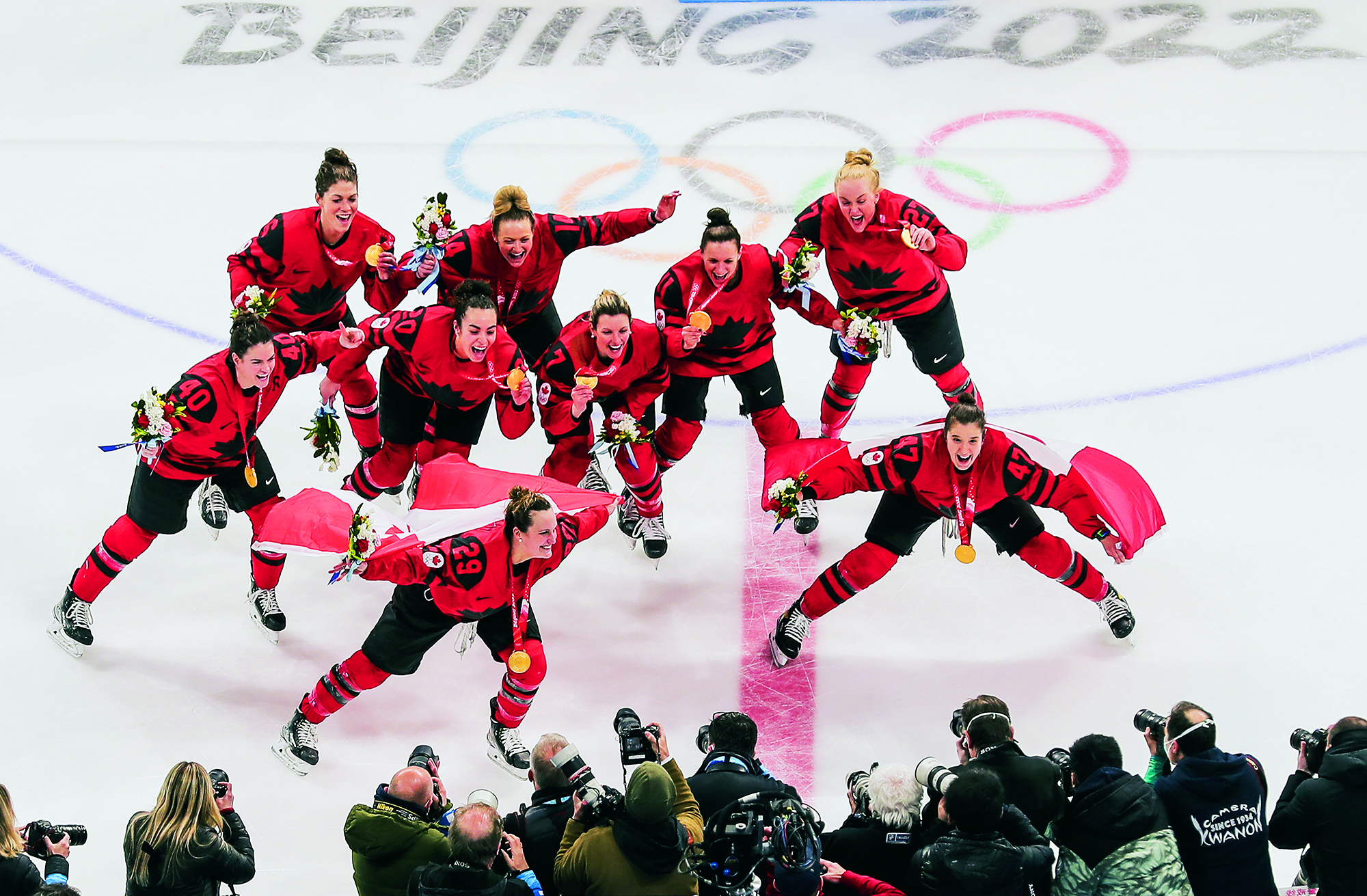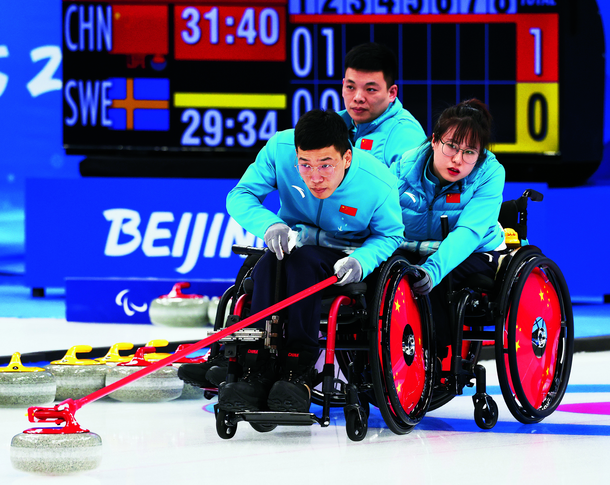 Teenagers from Flying Elephant Ice Hockey Club at the Nangong International Ice Sports Center in Fengtai District, Beijing, on February 20, 2022.