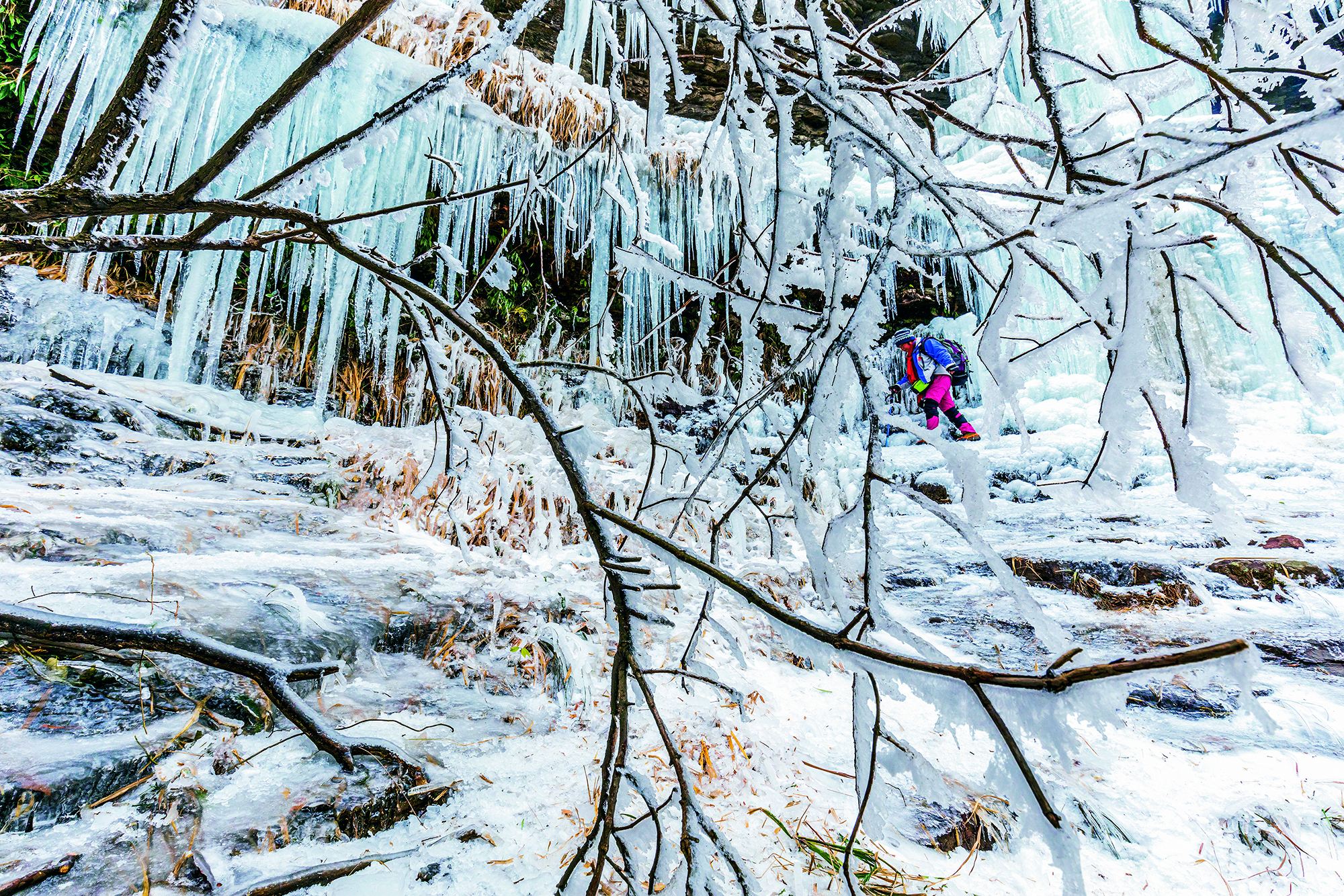 2020年1月17日,吉林省辽源市,游人们来到红枫潭乐享冰雪