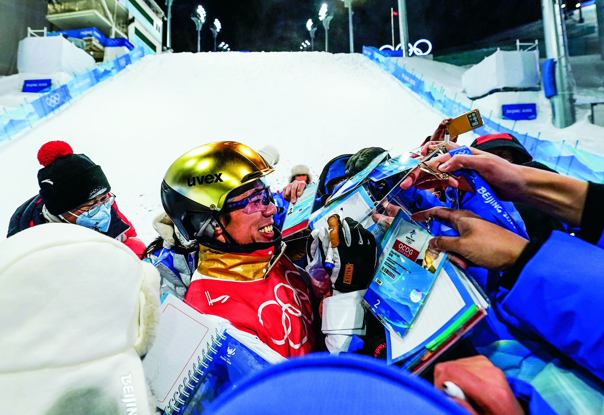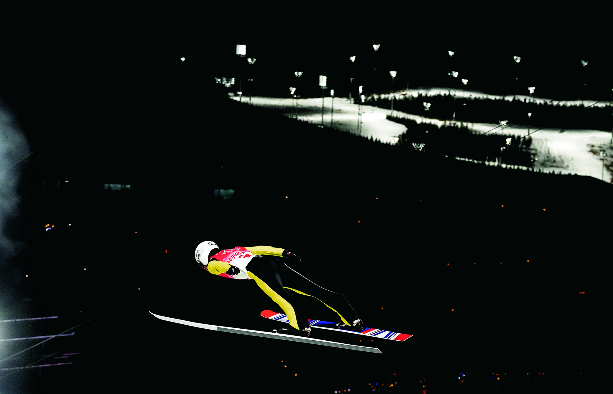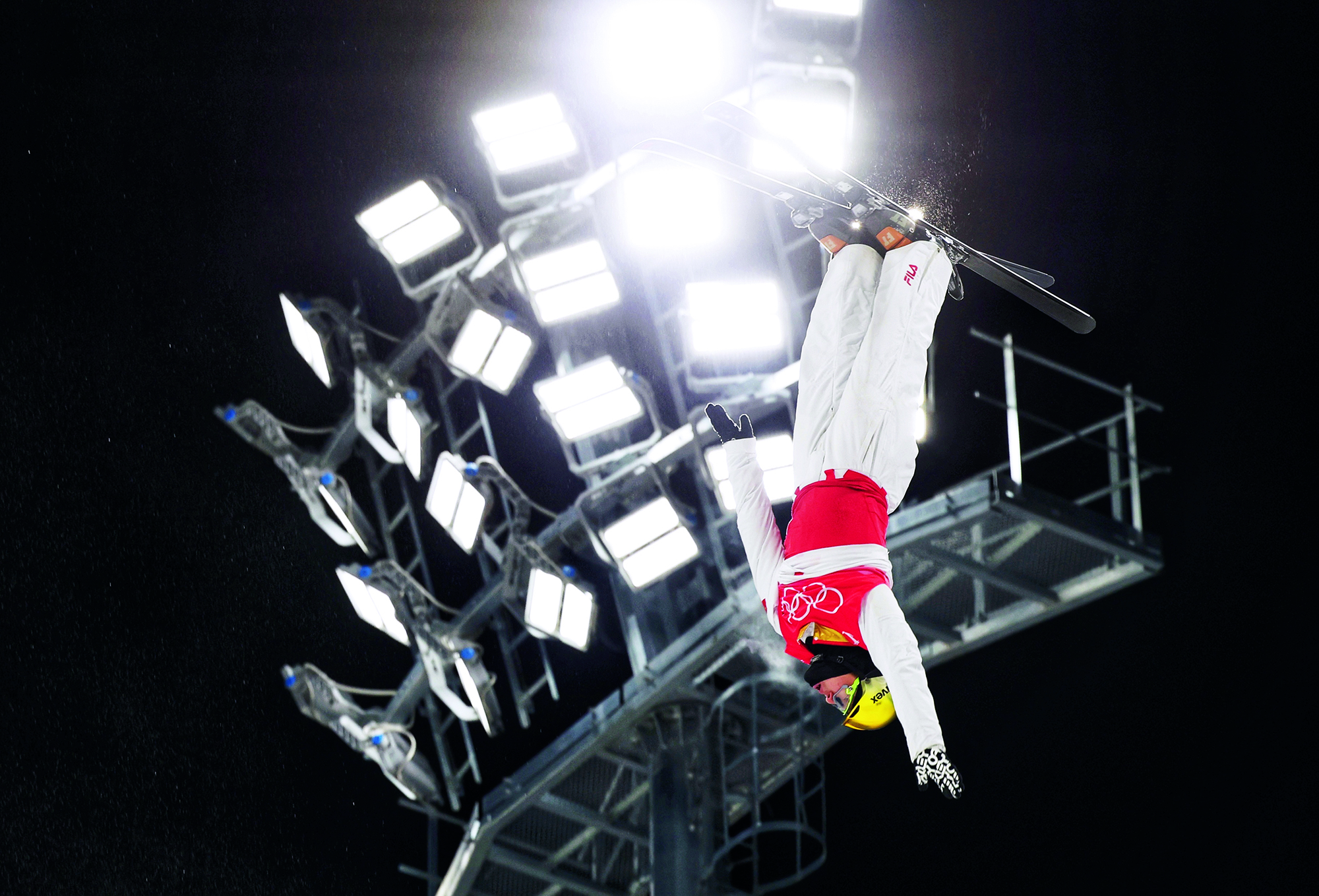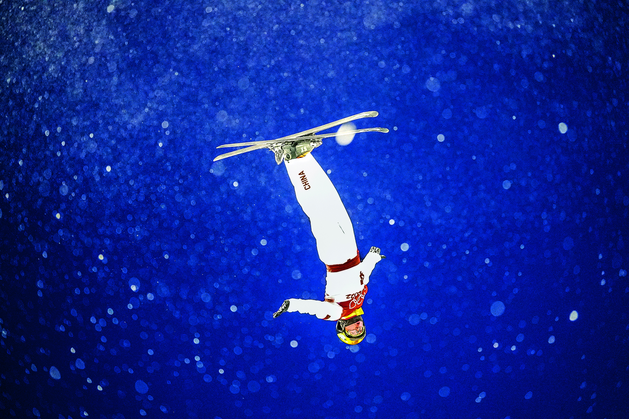 Yuan Zikun, a 15-year-old student from Beijing, performs freestyle skiing aerials during the 6th Nanshan Free Skiing and Double Board Open at Nanshan Ski Resort in Miyun District of Beijing on January 16, 2022.