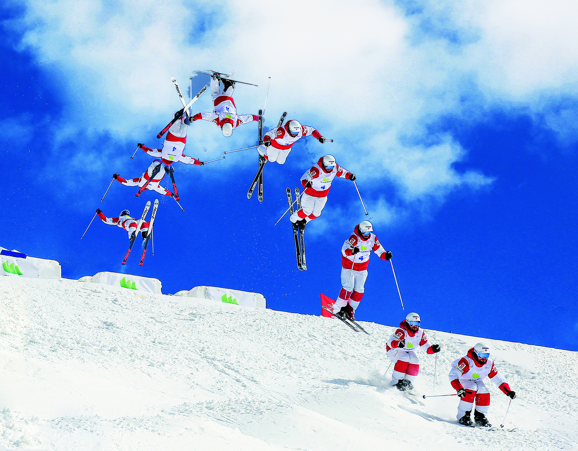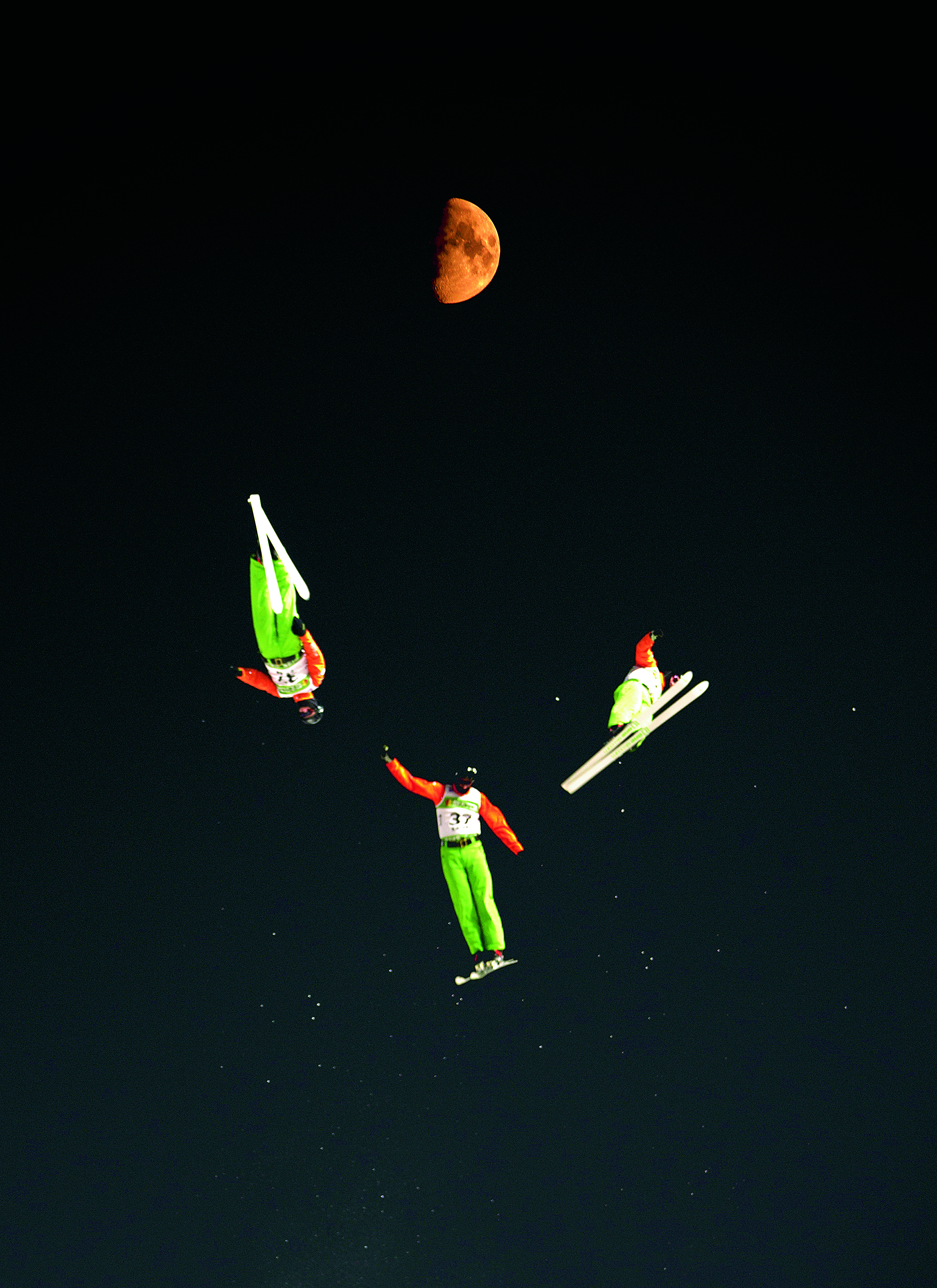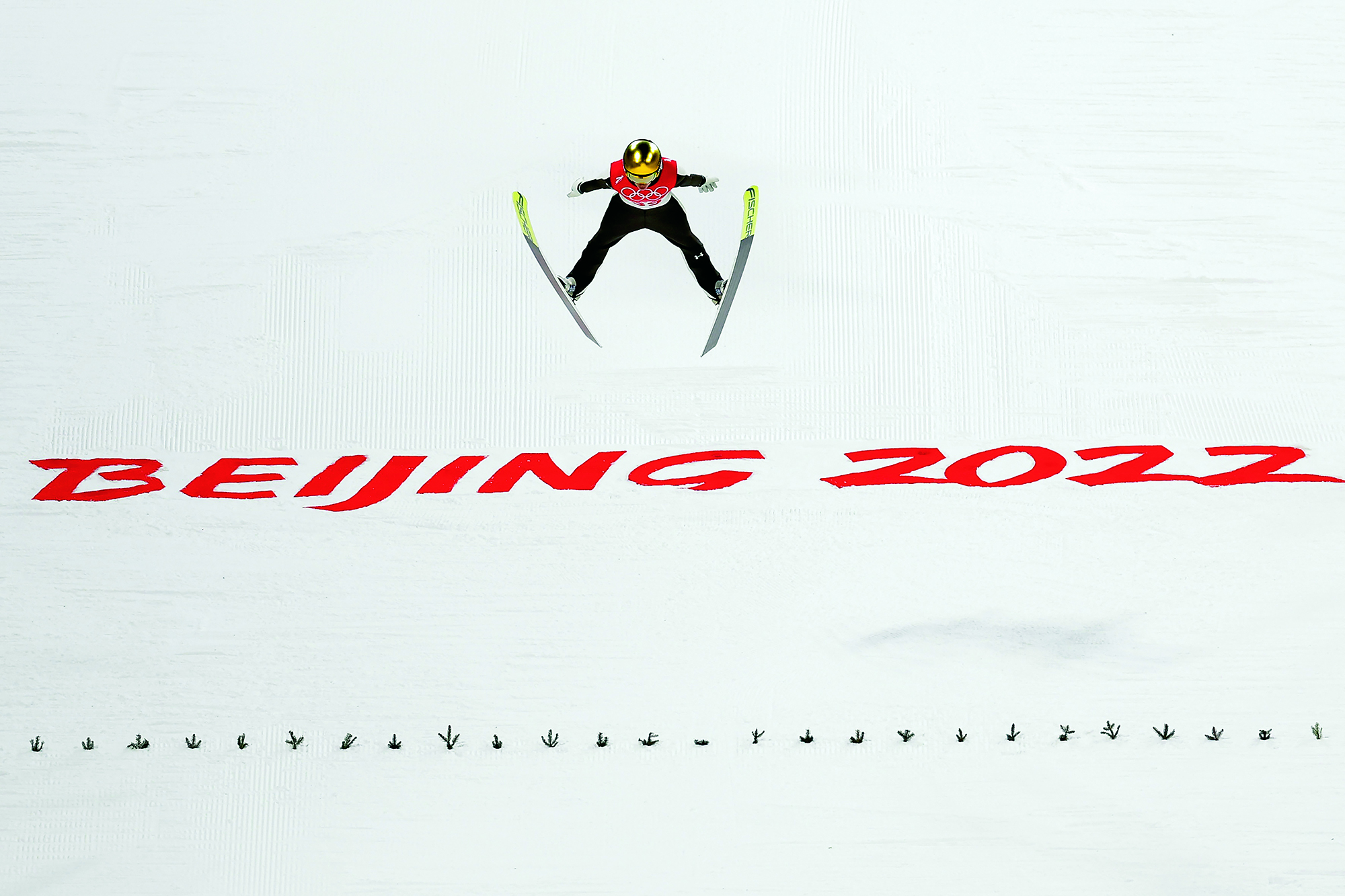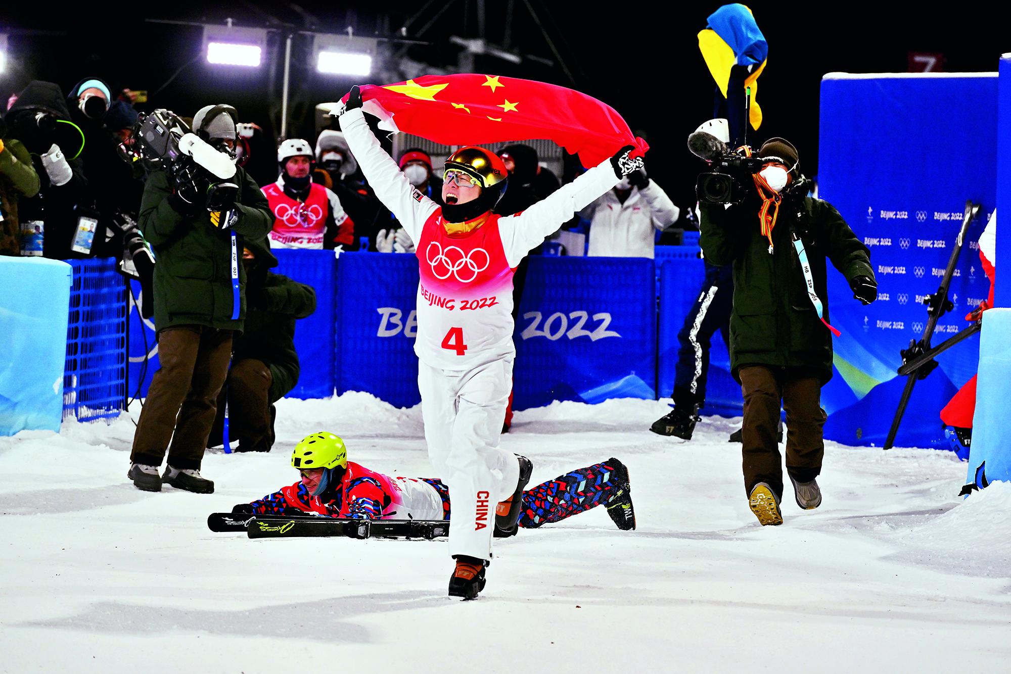 Yuan Zikun, a 15-year-old student from Beijing, performs freestyle skiing aerials during the 6th Nanshan Free Skiing and Double Board Open at Nanshan Ski Resort in Miyun District of Beijing on January 16, 2022.