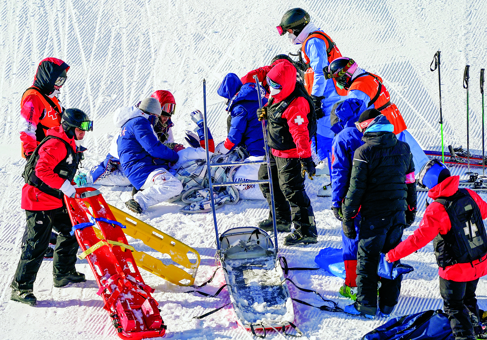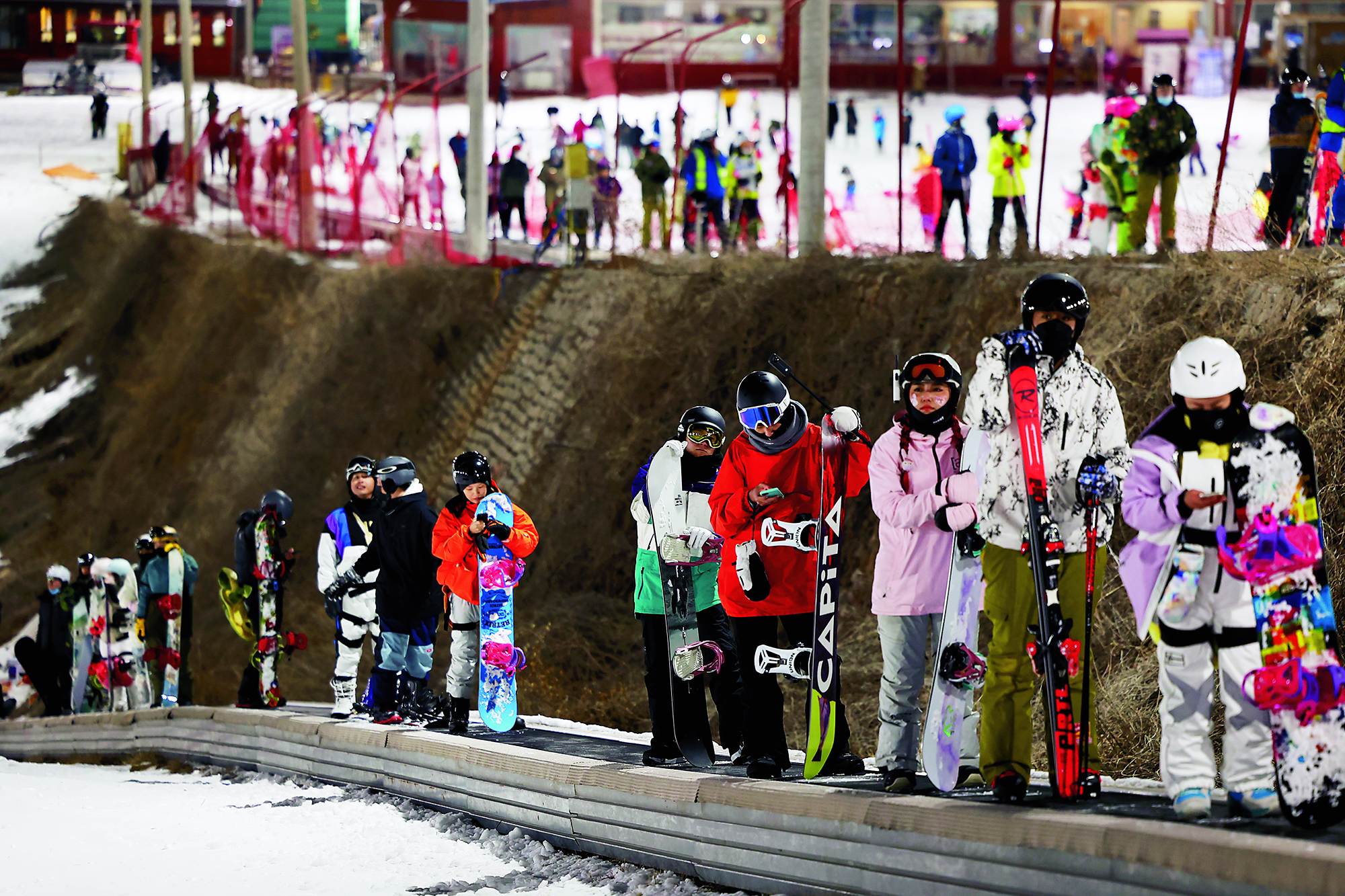 People experience skiing and the fun of snow sports at Xishan Ski Resort in Beijing on February 6, 2022.