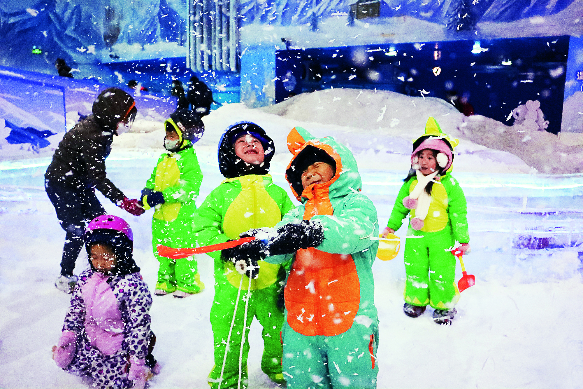 2022年1月8日,上海,小朋友们在喜马拉雅冰雪世界感受冰雪之乐