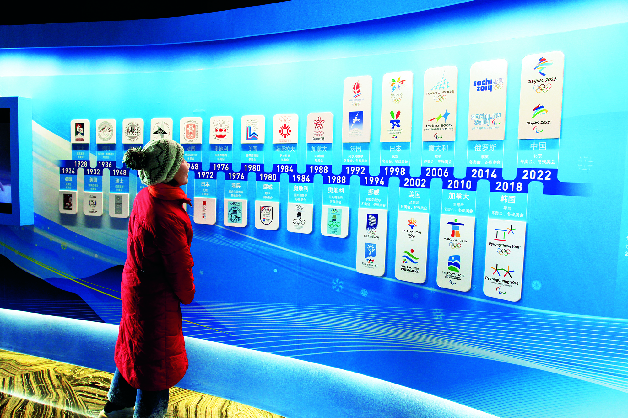 2022年1月26日,北京,“冬梦飞扬——中国科技馆科技冬奥主题展览”正式面向公众开放。展览共 设“冬奥之约”“冰雪之魅”“运动之秘”“科技之力”“未来之城”五个主题展区及序厅、冬残奥会展示区、教育活动区三个展示交流区,向公众普及科技冬奥与冰雪运动知识,并结合5G、4K、VR等现代技术手段,为观众营造一个可参与、互动、体验的科技冬奥冰雪世界